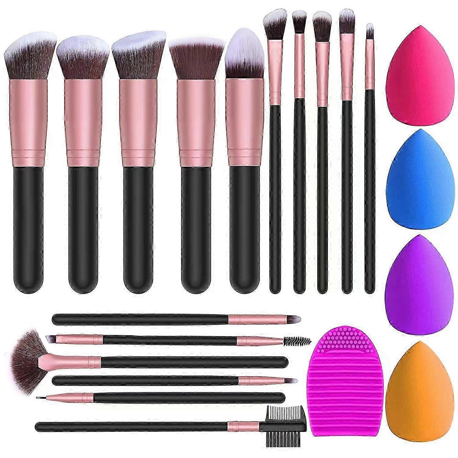 Makeup brush set - includes 5 large brushes, 11 small brushes, plus 4 makeup eggs 1 wash egg. High quality synthetic brush Br - made of soft and dense synthetic fibers, it provides a high definition finish with a liquid, powder or cream base without absorption or loss of product. Multifunctional brush set setup - covers all sizes and shapes of sculpted brushes and sculpted faces seamless. Ideal for contouring, blending, shading and highlighting. Handcrafted wood - high quality ferrule and wood materials allow for optimal adhesion control when applying the product. Guarantee - Ideal contour, hidden, blended, quite common, as it covers all application requirements. Perfect for those who love to wear makeup.