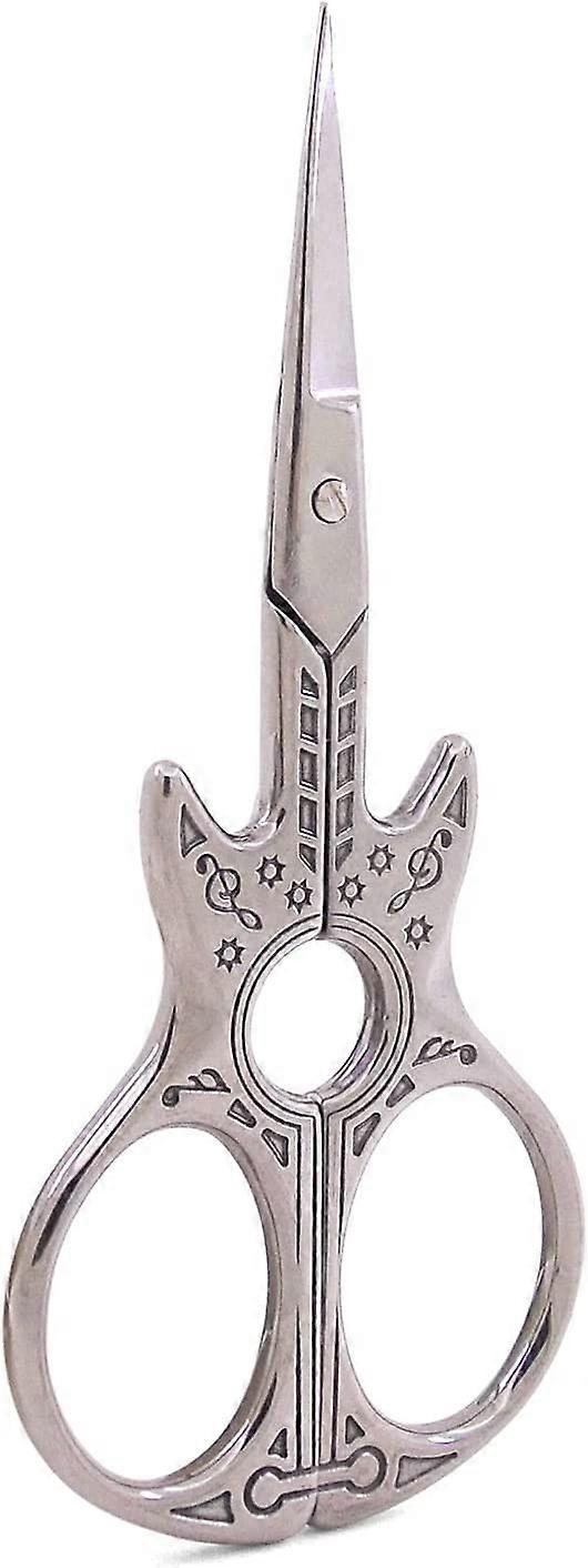 Embroidery Scissor Vintage Guitar Scissor Creative Paper Scissor for Fabric Cutting Craft Threading Household (silver 1pc)