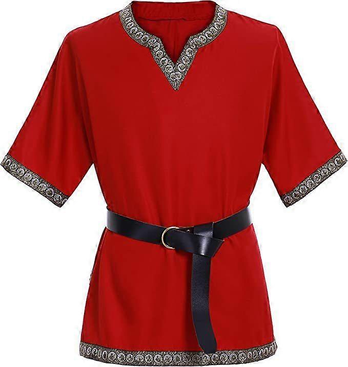 Men's Medieval Tunic Shirt with Embroidered Trim and Belt, Viking Renaissance Costume Top for Cosplay or Festivals