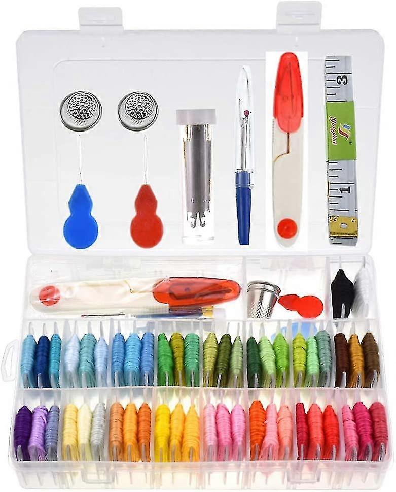 Features: - The sticktwist set is made of soft, smooth polyester, flexible, durable, colored number marked on spools, no worries about fin pillings or falling apart. - Cross Stitch Thread is packed in a practical plastic box. Neat and organized, convenient to carry and store. --Perfect for friendship bracelets, children's crafts, cross stitch projects, tassels, or any other Christmas decorations. Specification: Material: polyester-cotton Color: 50 colors Quantity: 8 meters per strand and consisting of 6 strands < br> Package includes: 50 x colored embroidery threads 30 x embroidery needles (3 sizes) 2 x threading tools 2 x thimbles 1 x scissors 1 x tape measure 1 x thread loosener 1 x storage box Note: This embroidery set and the needles are not for children, please keep it away from the young children!