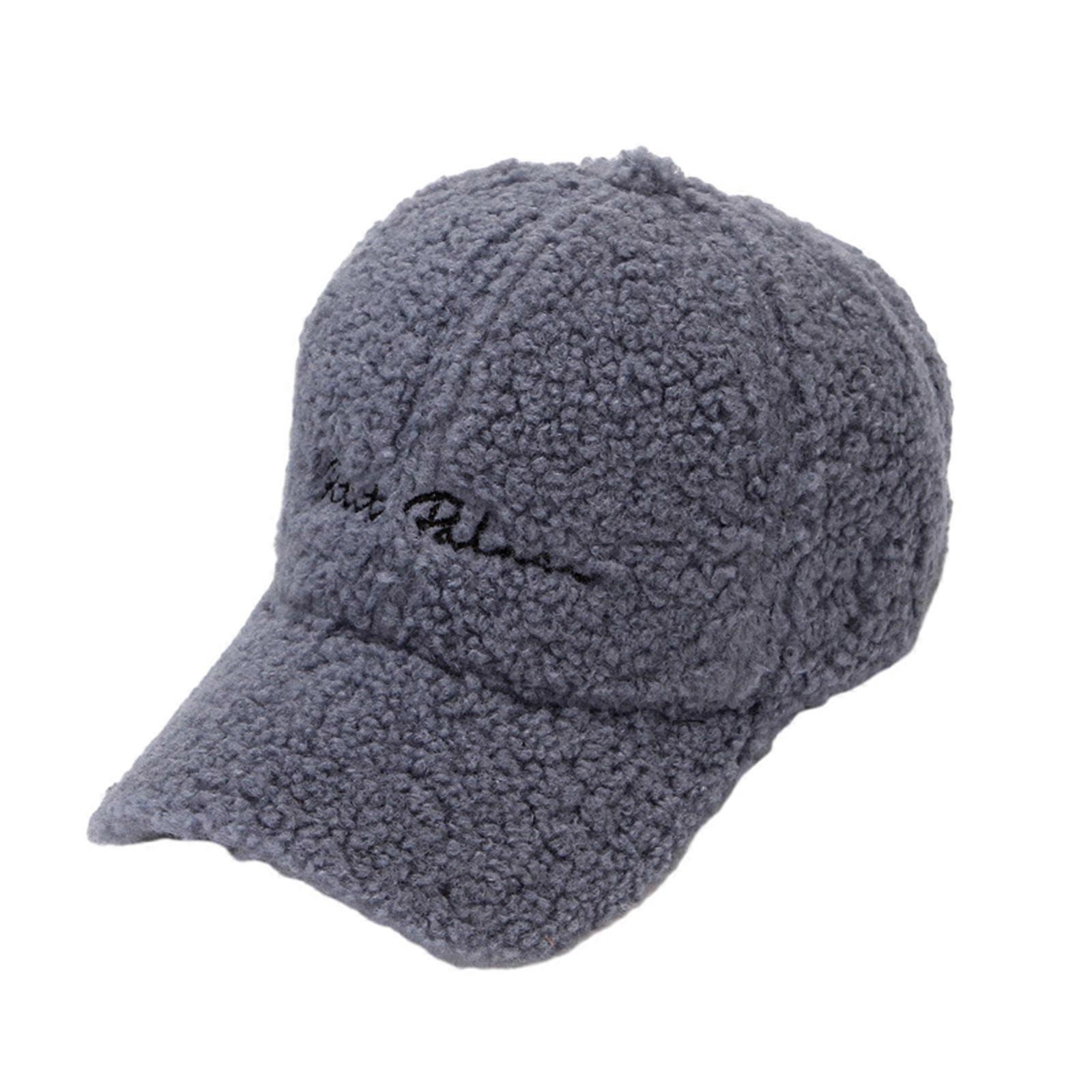 Plush Baseball Cap with Embroidery Letter Windproof Hat for Christmas Harajuku Adult Outdoor Adjustable Duckbill Cap Light Gray