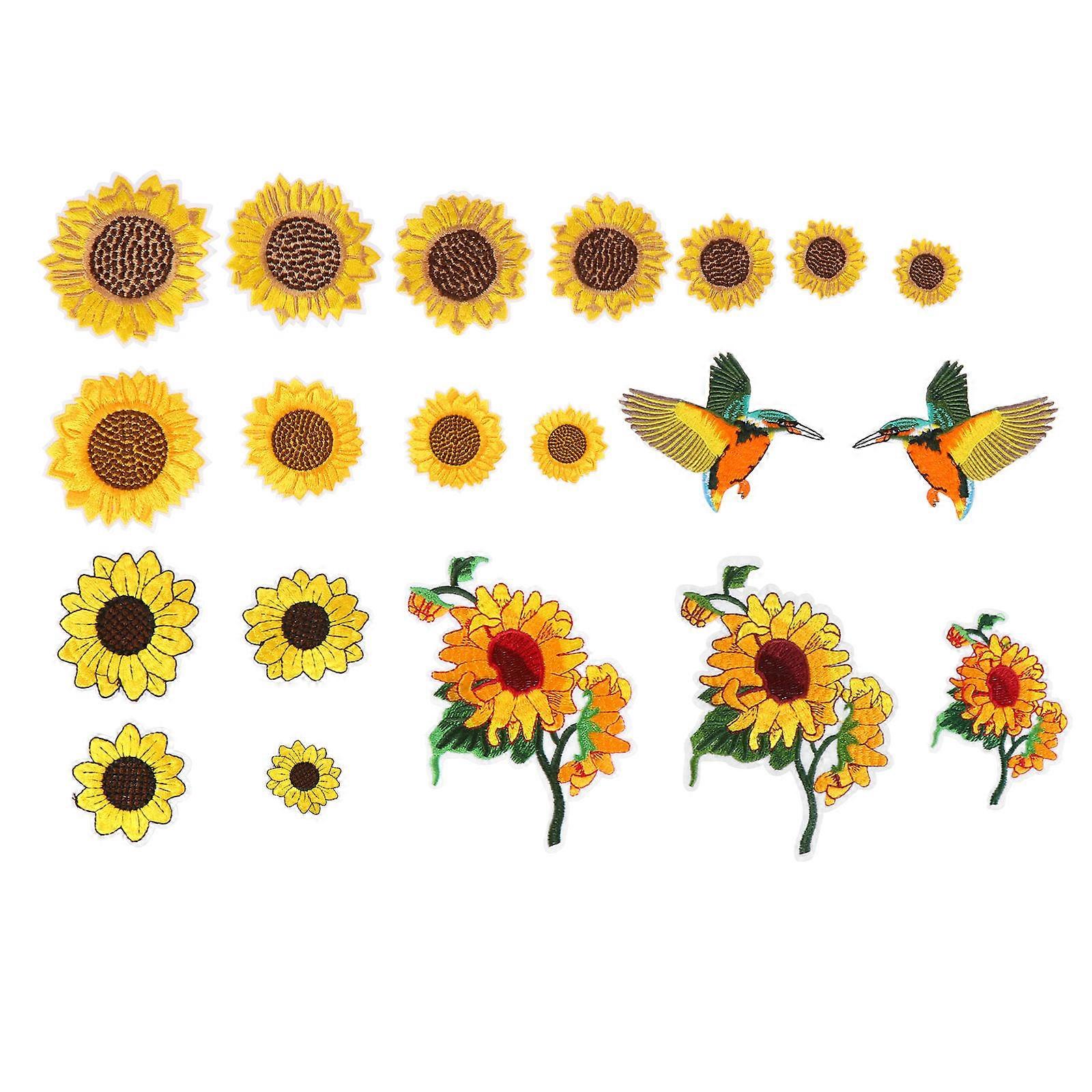 Embroidery Patch Stickers Pro Design Sunflower Crafts Assorted Color 8.5X5CM Recyclable 20Pcs