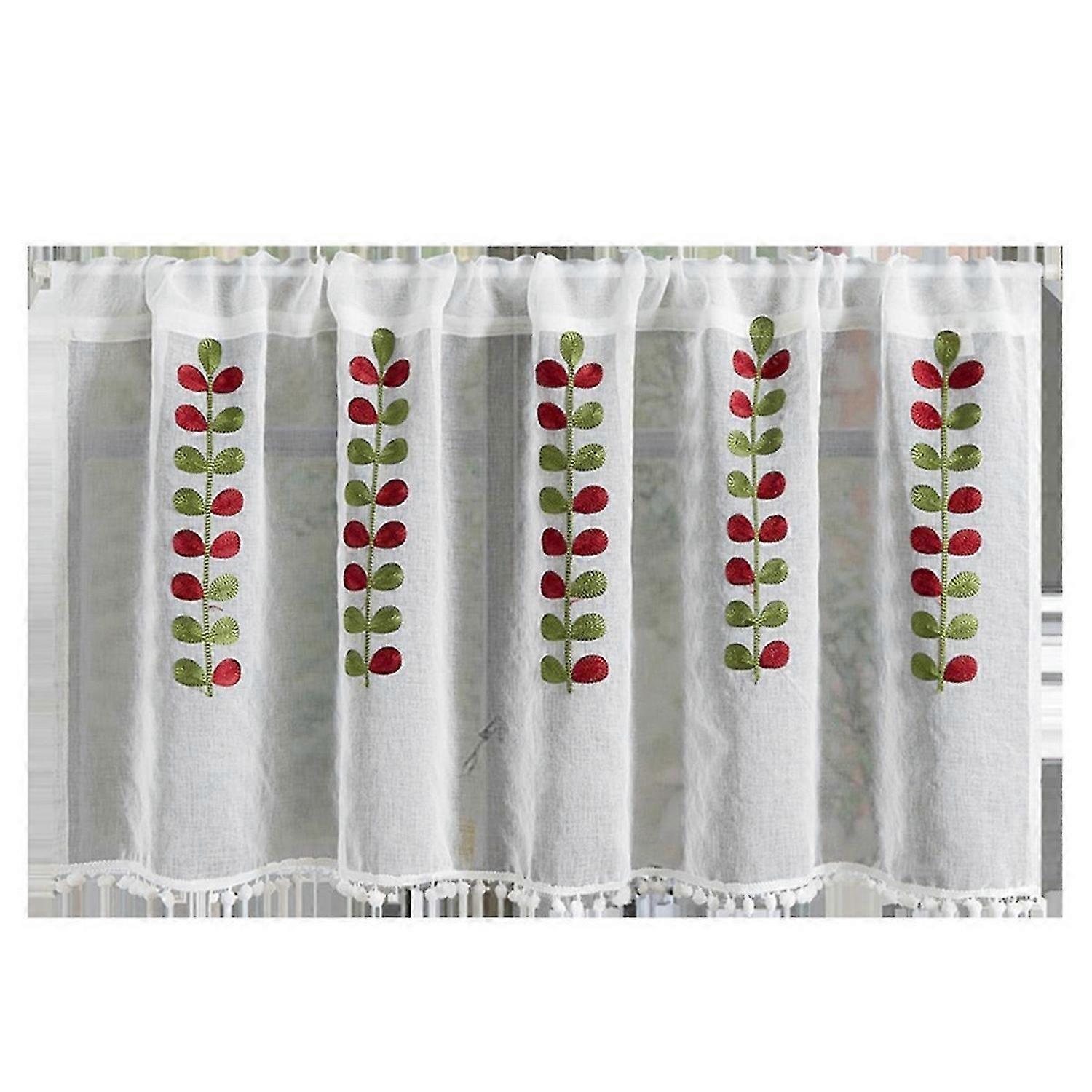 Embroidered Semi-transparent Curtains Kitchen Half Window Sheer B