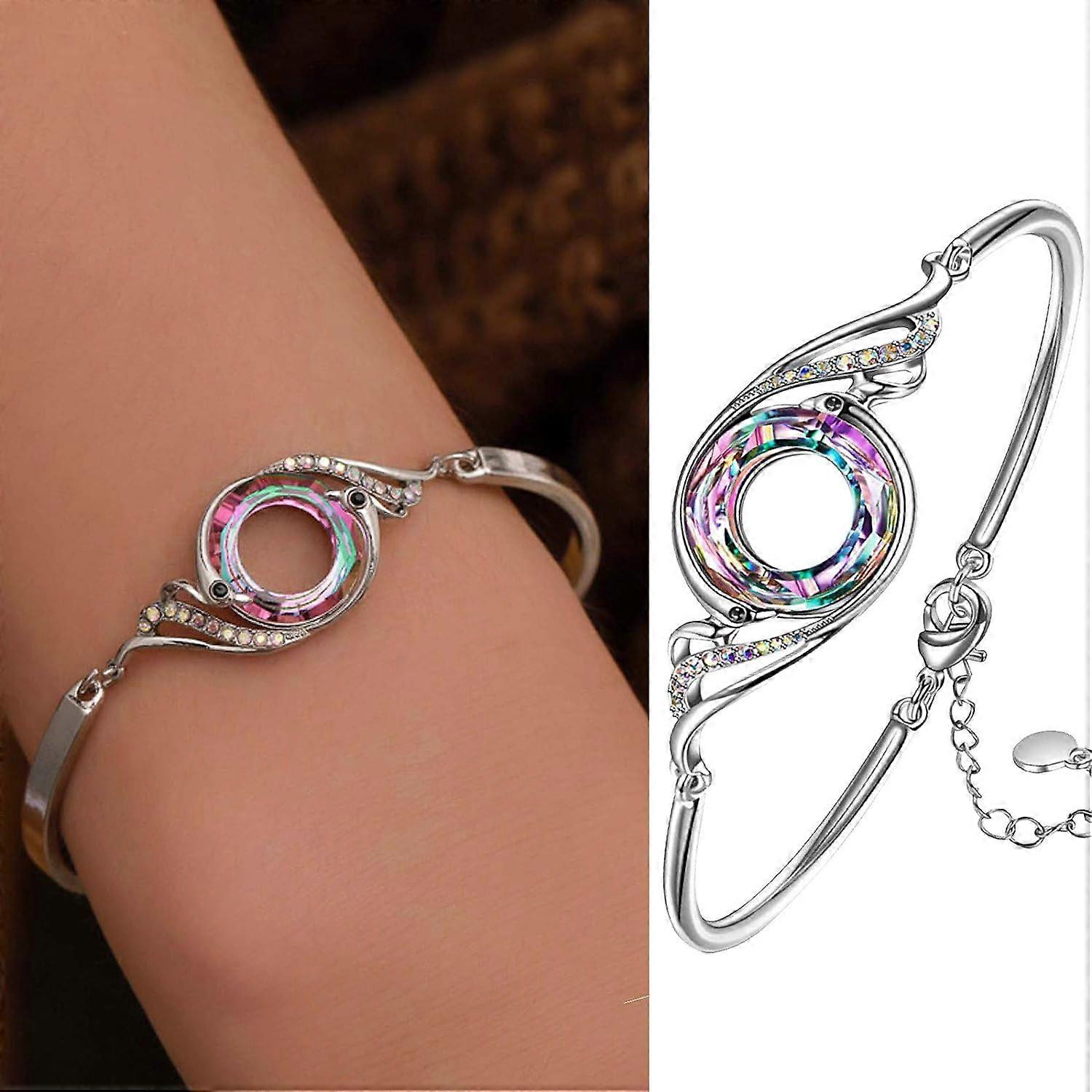 Creative Colorful Crystal Peacock Gradient Bracelets Jewelry Gift for Women Mom Dainty Boho Bracelet Bangle Love Valentine's Day Wedding Bridal Birthd