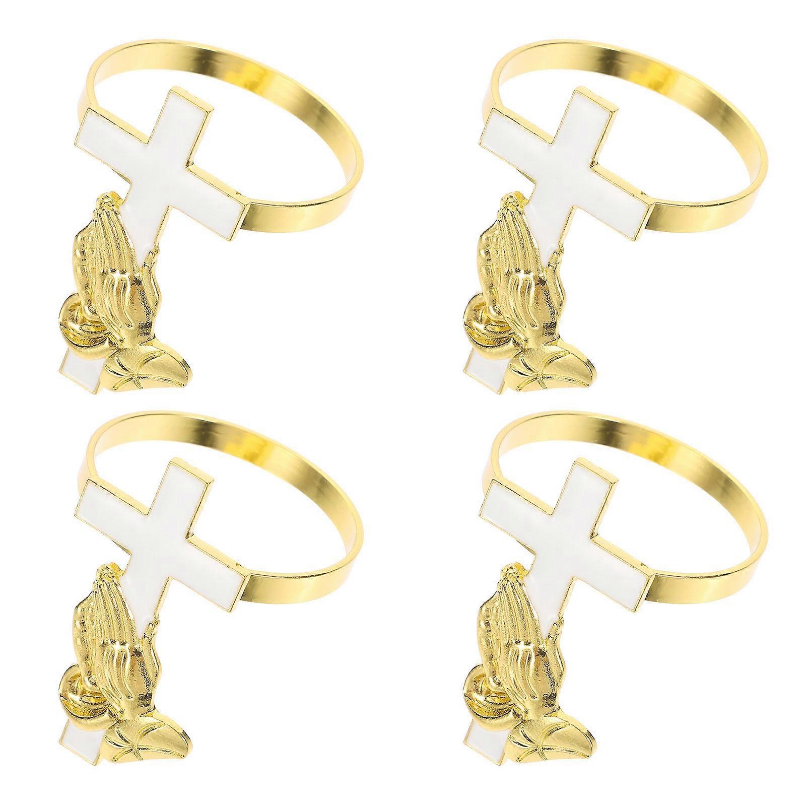Creative Napkin Rings Elegant Cross Design Dining Table Decor Zinc Alloy Golden 5.00X4.00X4.00CM Prevents Slipping 4Pcs