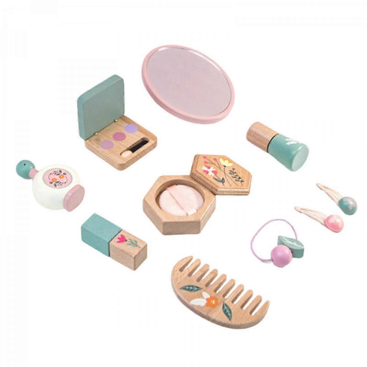 Creative Role Play Wooden Beauty Set For Kids Girls 3 4 5 Years Old 10Pieces Pretend Makeup Set Includes Brushes Mirror Case