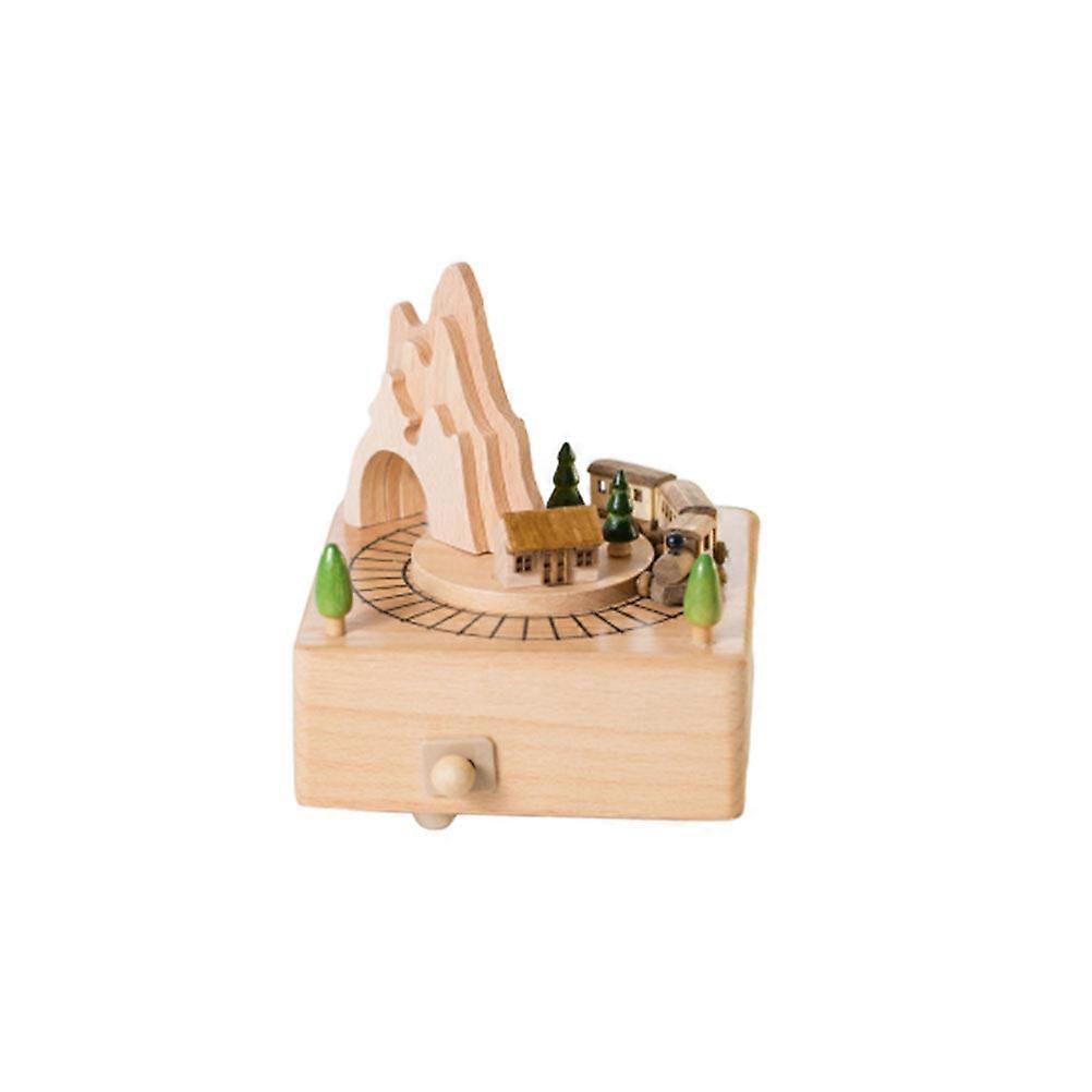 Creative Small Train House Clockwork Music Box Fashion Wood Carved Wind up Music Box Desktop Decoration Gift for Birthday Valentine (Light Yellow)