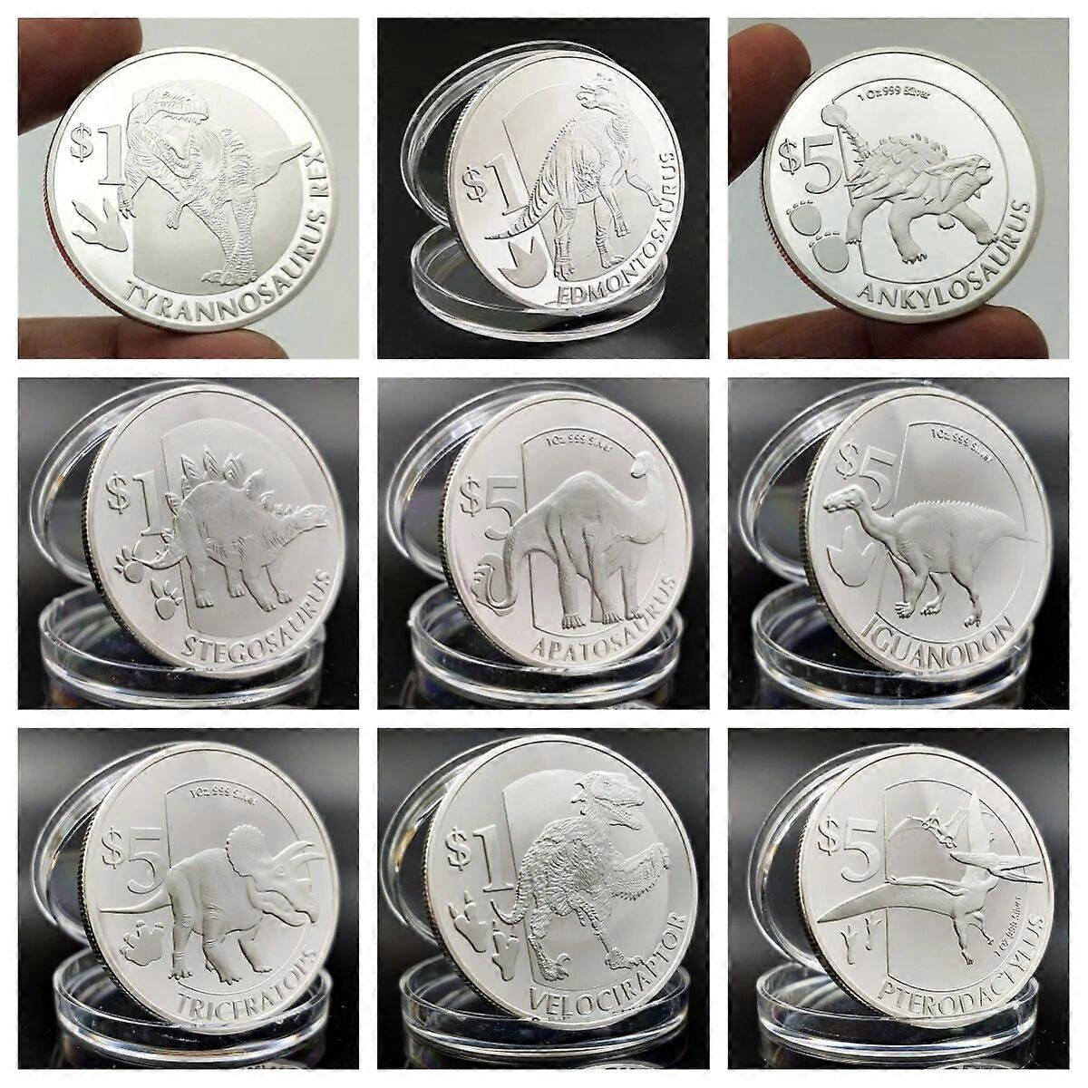 Creative Dinosaurs Collectible Coins Set Ancient Animal Dragon Painted Souvenir Coins For Collection Art Crafts Home Decor Gifts