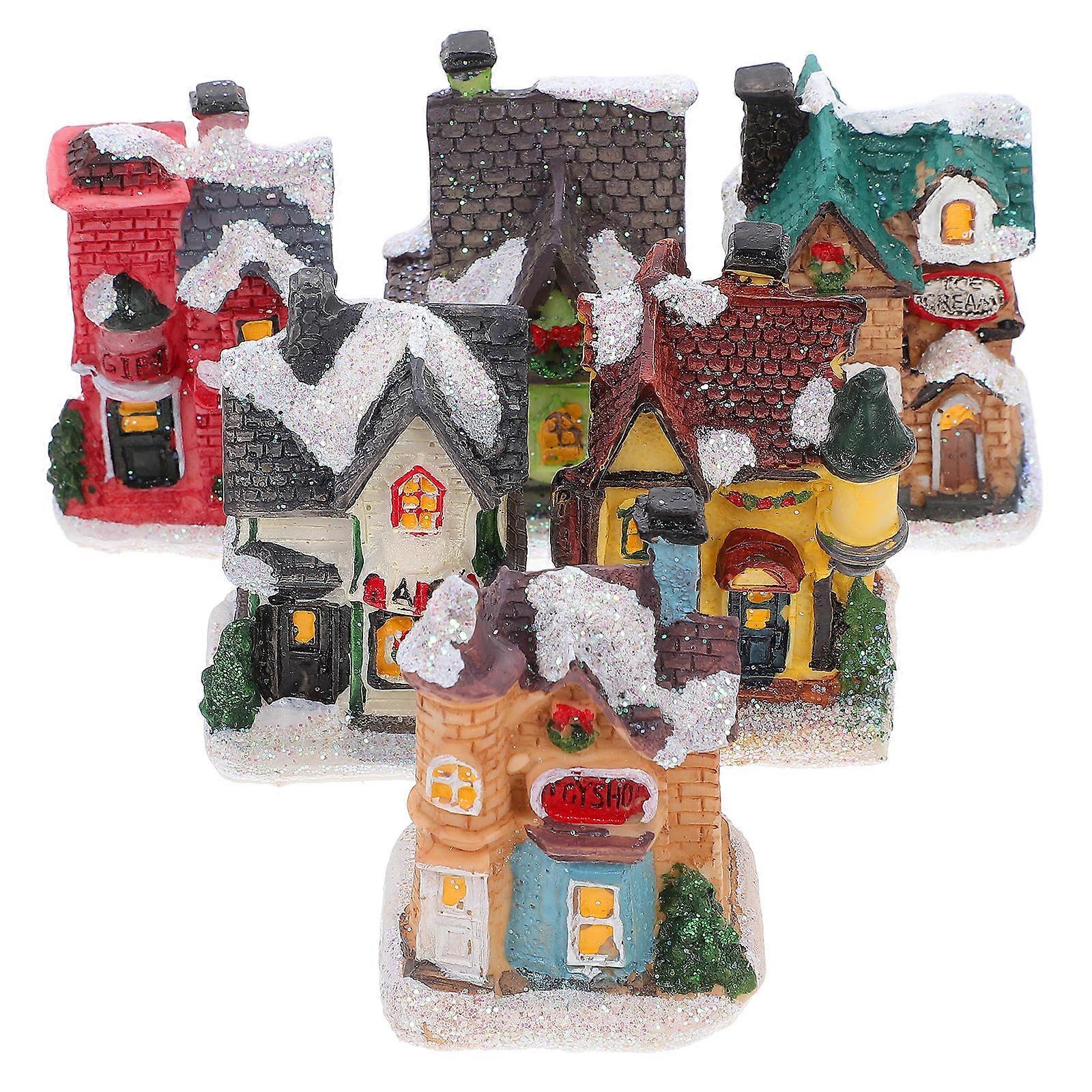 Creative Luminous Decor Luminous Resin House Children Families Christmas Style Assorted Color 8.00X5.50X4.50CM Decoration 6Pcs