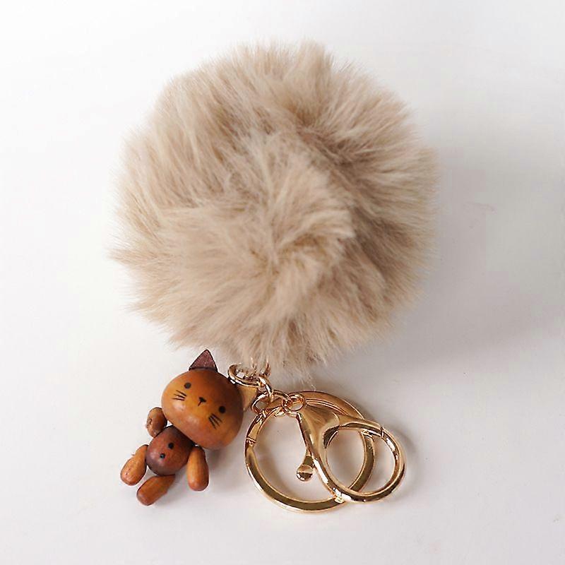 Creative Wooden Vintage Cat Keychain Ornament Unique Cat Keyring Decoration with Plush Ball Lovely Keyring Ornament for Backpack Bag