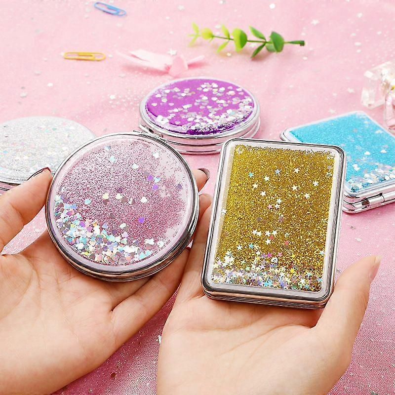 Creative Quicksand Internet Celebrity Small Mirror, Cute Girly Heart, Foldable Mini Makeup Mirror, Portable Compact Mirror, Small, Double-sided, Round