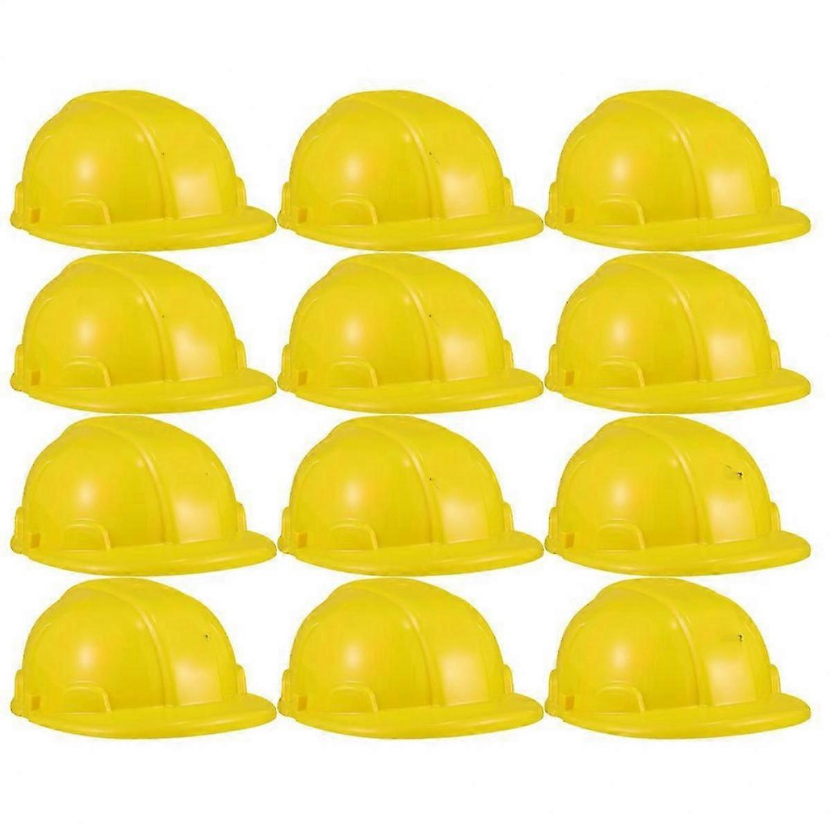 12pcs Yellow Plastic Construction Hats for Workers, Durable Party Caps for Kids and Adults, Accessories for Dress Up and Celebrations