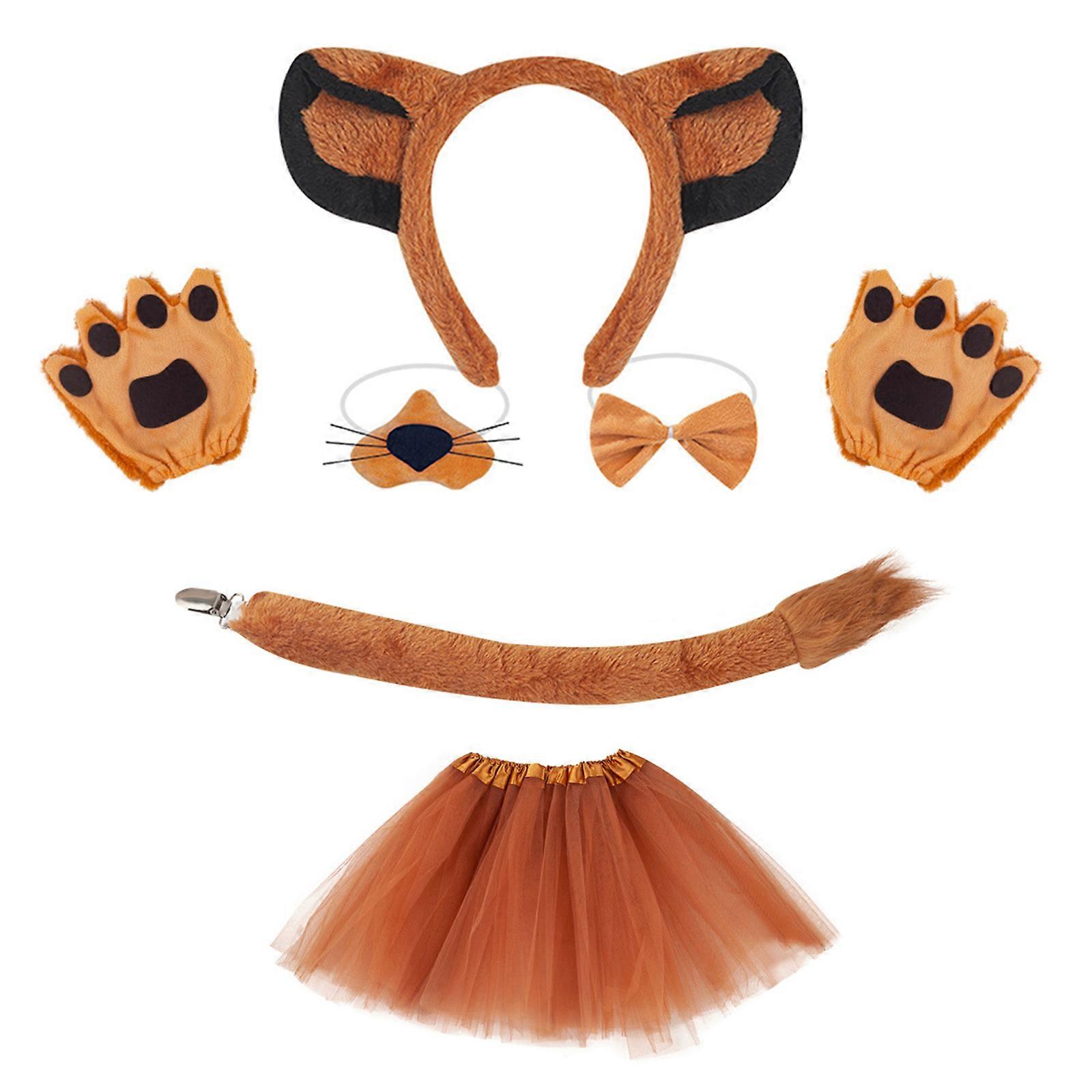 Animals Cosplay Costume Set Dogs Hair Hoop Set Plush Tail Bowtie Lions Ears Headband Mesh Skirt Gloves for Parties