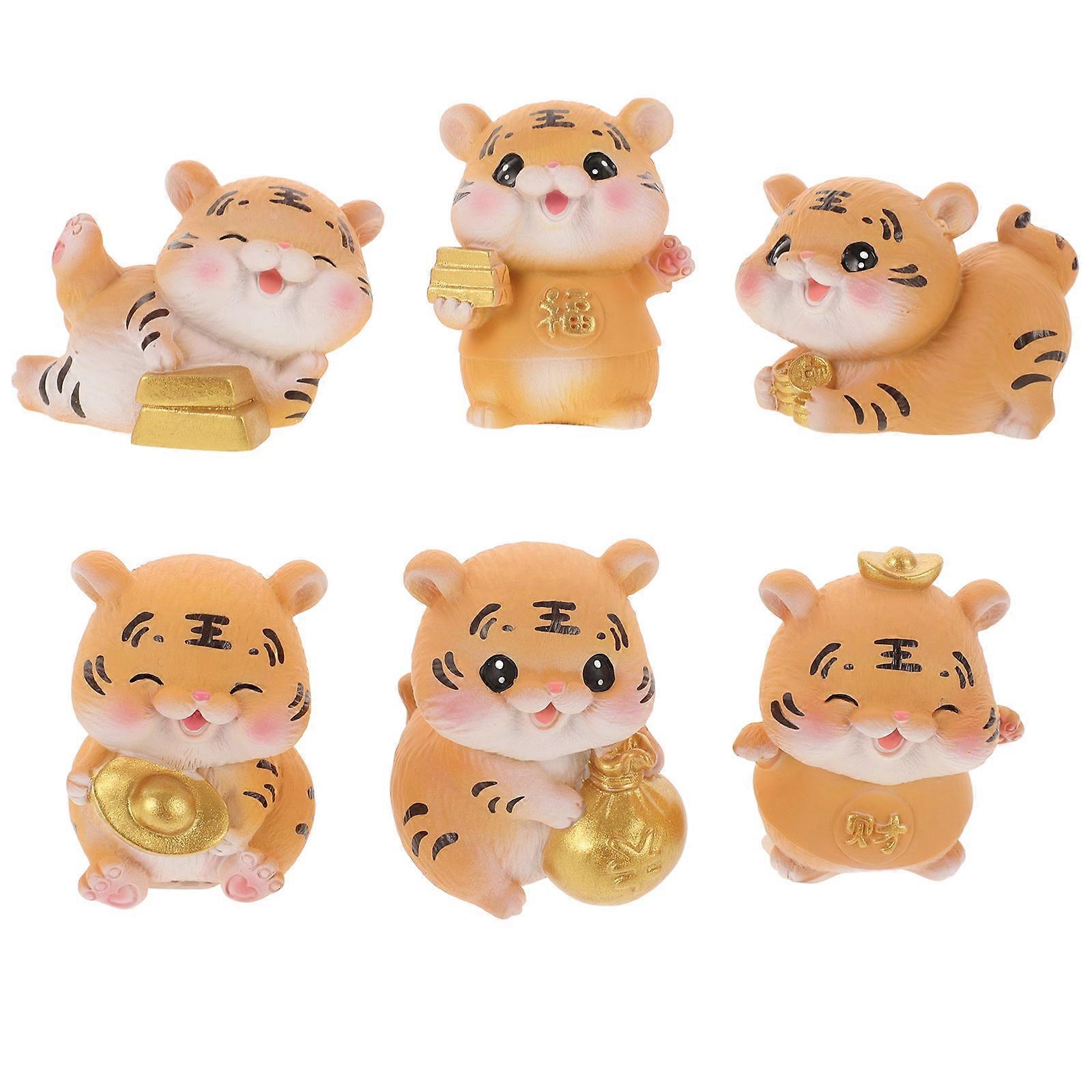 Animal Crafts Decors Tiger Ornaments Portable Resin Office Decoration 4.1x3.5cm Golden 6Pcs