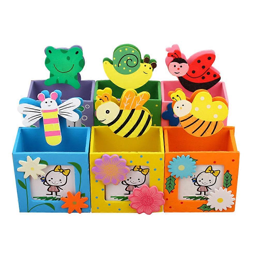 Animal Wooden Desktop Organizer Home Office School Use Square Shape Bamboo Material 1Set