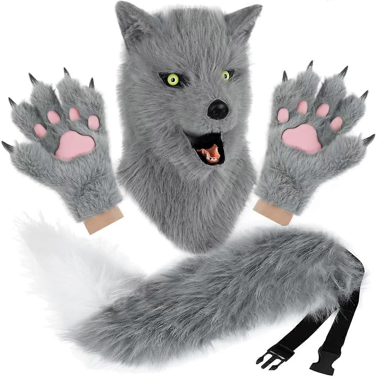 Animal Dog Head Mask Innovative Plush Plush Plush Clap Gloves Glove Glove Set Halloween Party Masked Ball Costume Cosplay