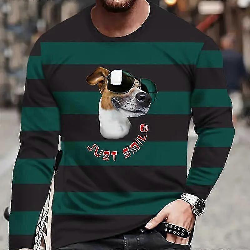 Animal Dog Print Men's Tshirts Long Sleeve Tees Round Neck Casual Pullover Men's Clothing Plus Size