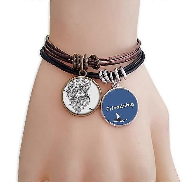 Animal Big Mouth Picture Monkey Friendship Bracelet Leather Rope Wristband Couple Set