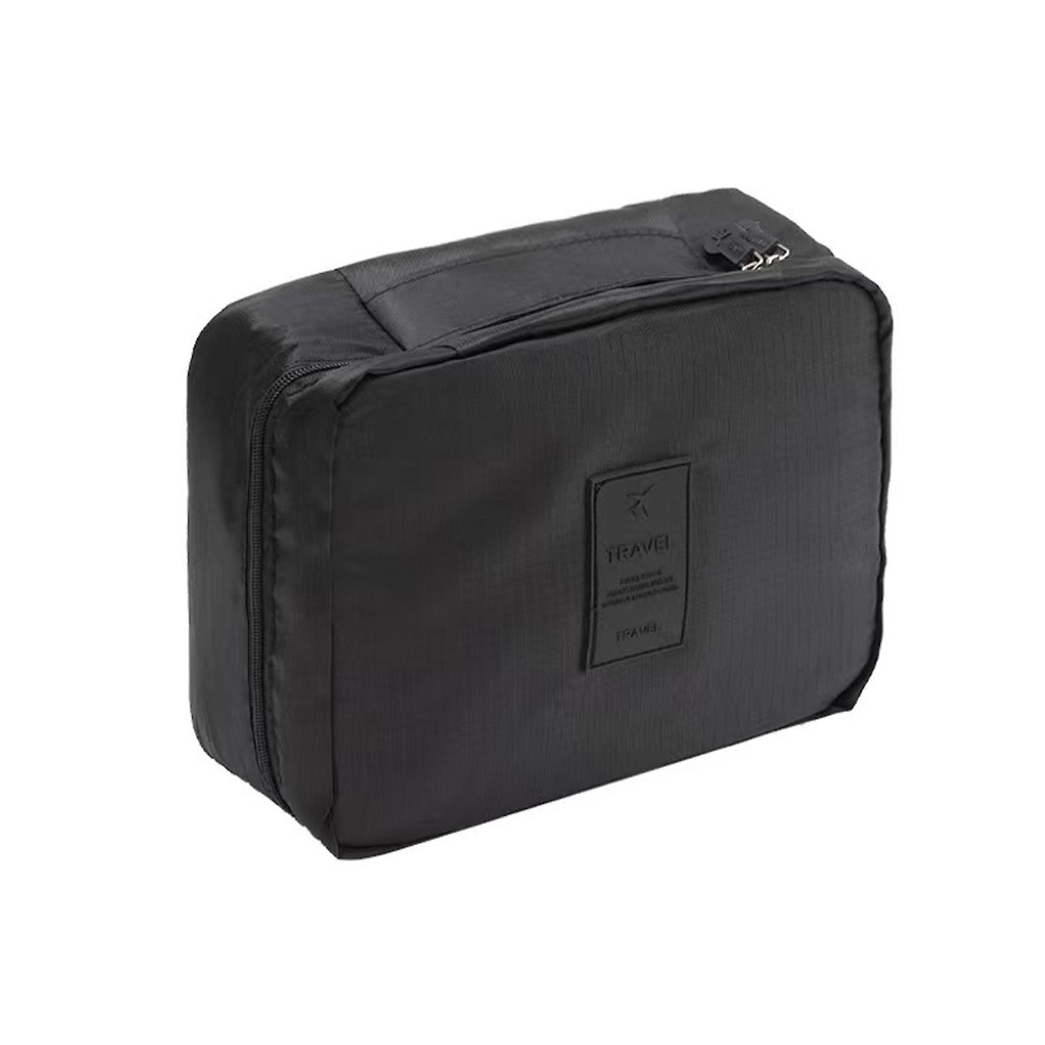Makeup Bag Waterproof Double Zipper Black Compartment Design Toiletry Organizer Travel Supplies