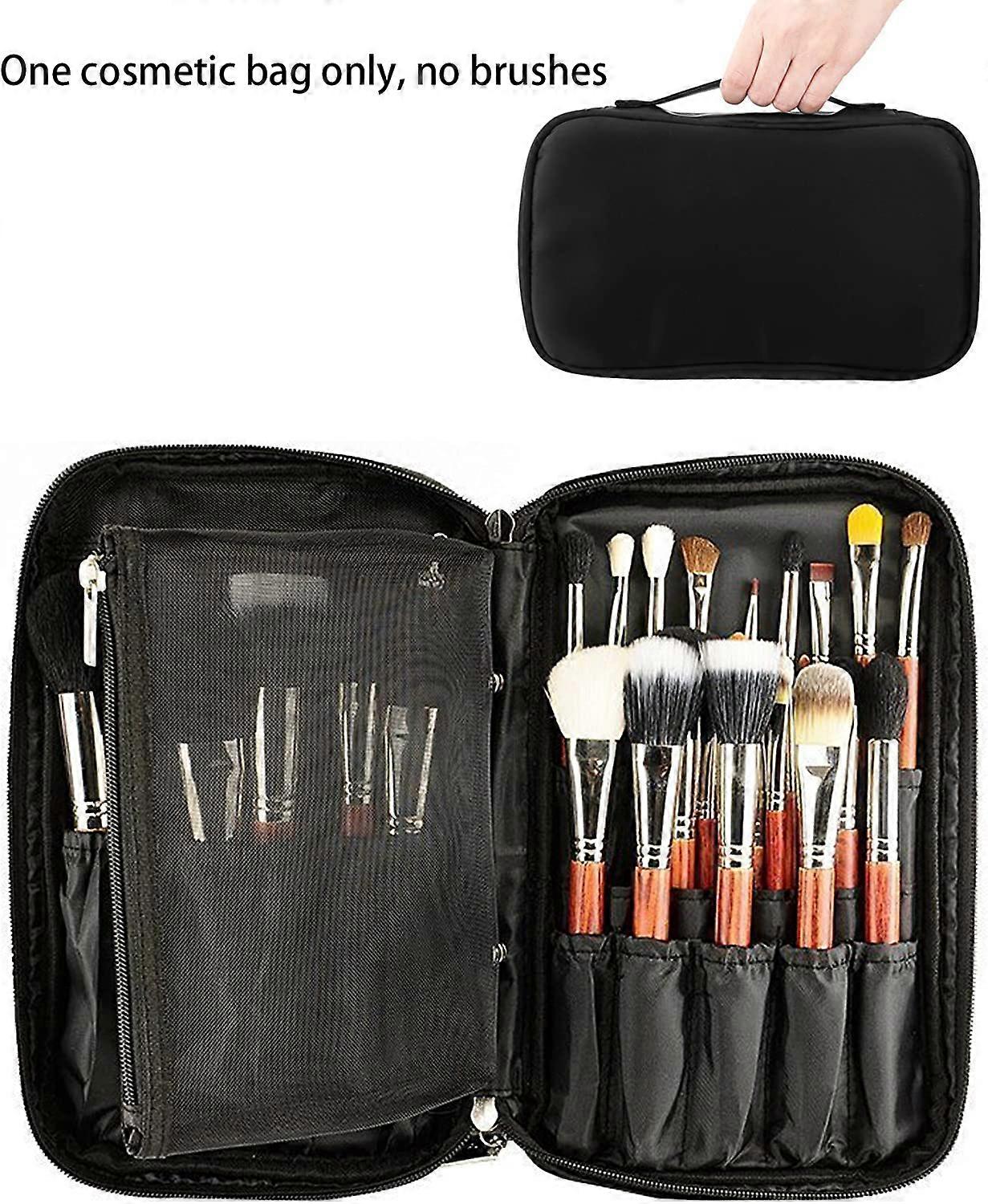 Makeup Brush Bags Travel Cosmetic Organizer Case Make Up Tools Handbag Beauty Case with Detachable Mesh Makeup Case(1pcs, black)