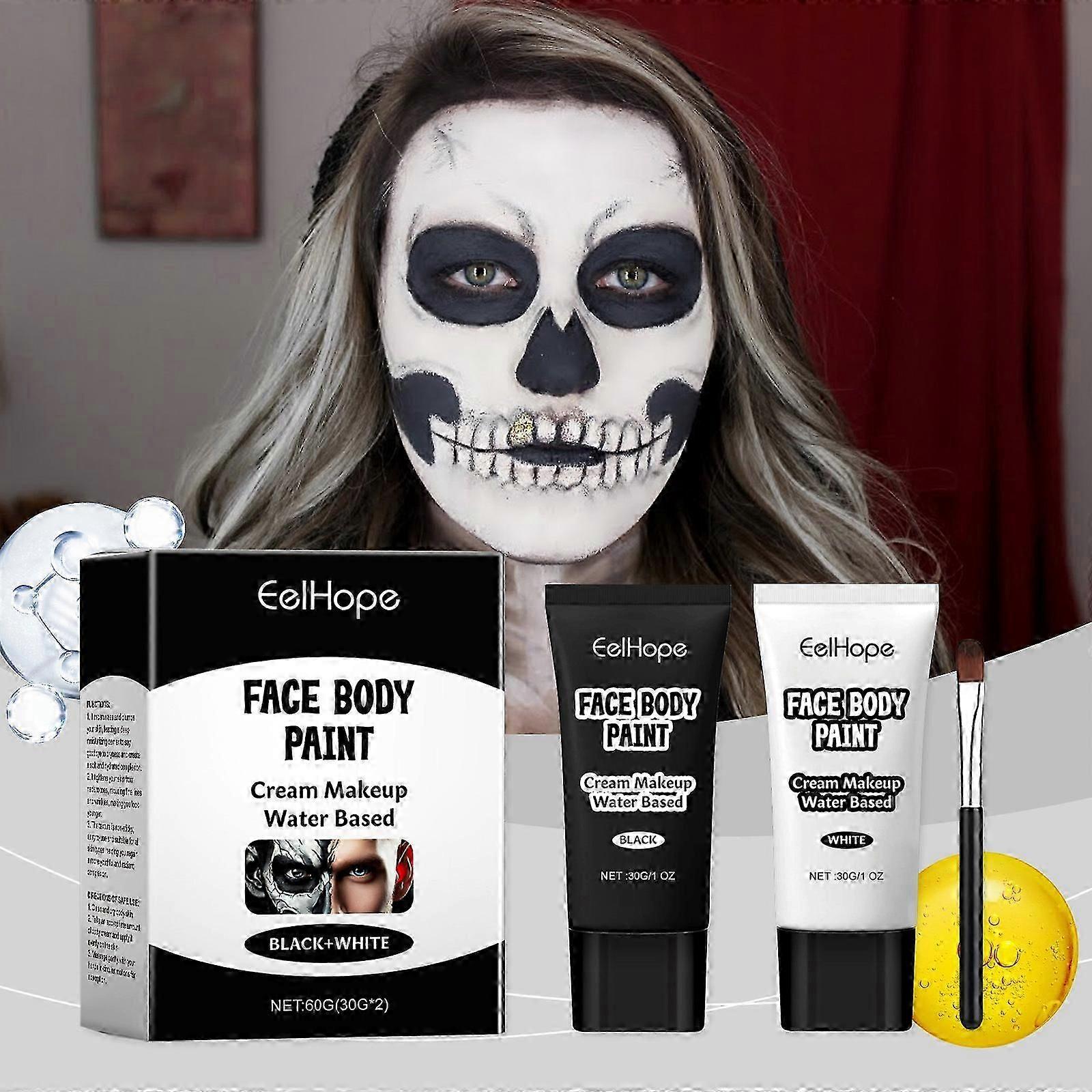 Black White Face Body Paint with Makeup Brush,Water Based Face Paint for Adults and Kids,Cream Body Paint,Face Painting,Halloween Cosplay Mime Makeup