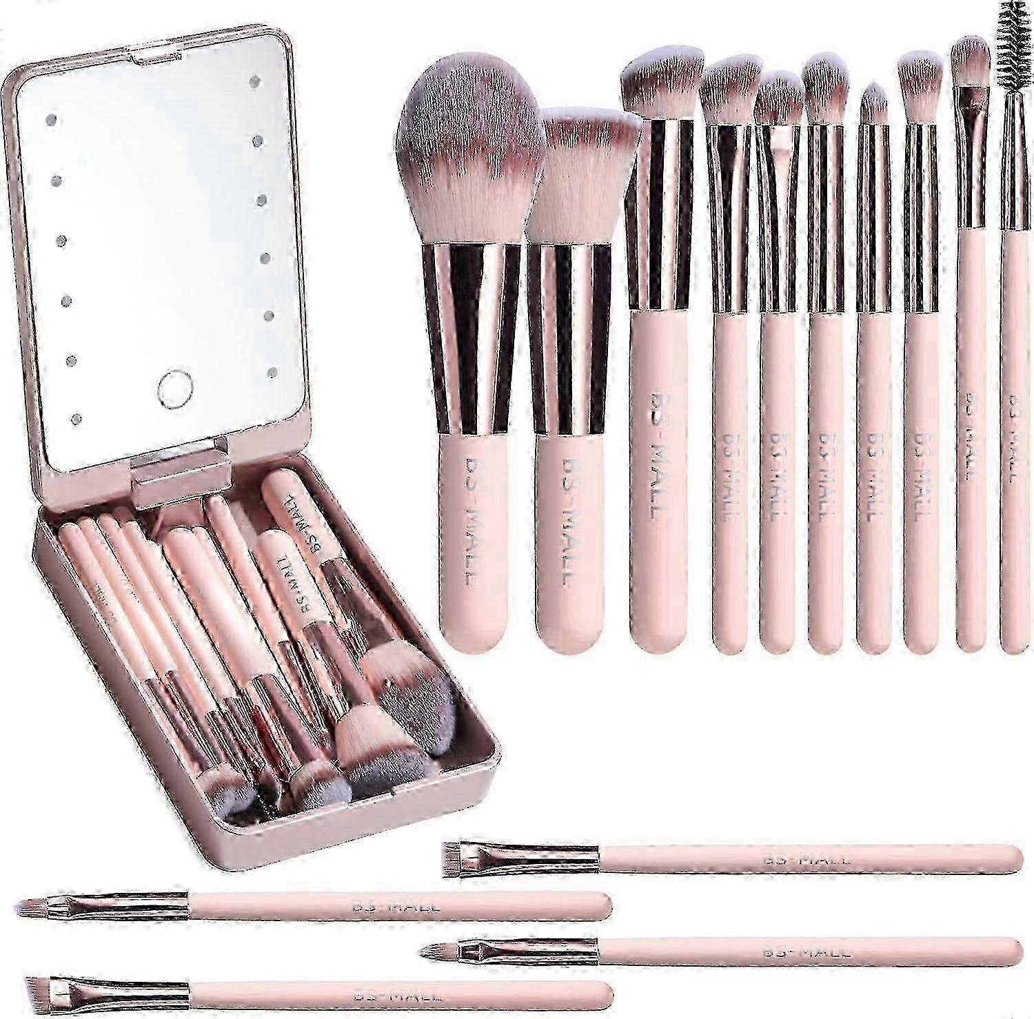 Makeup Brushes Foundation Powder Concealers Eye Shadows Makeup Travel Set with Mirror Large Pink
