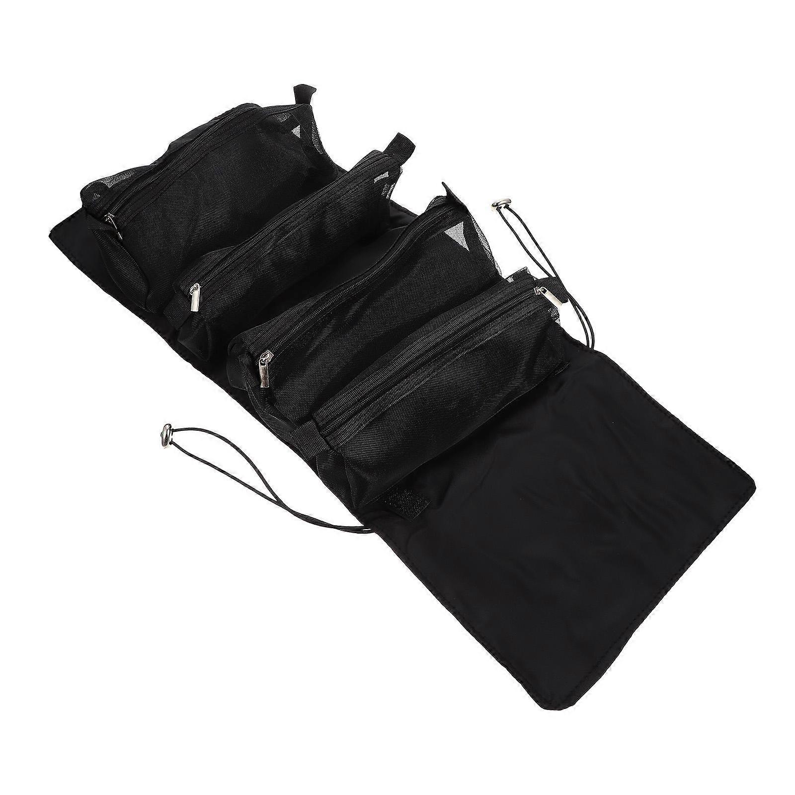 Makeup Pouch Portable Travel Toiletry Bag Cosmetic Storage Bag Folding Pouch Black Polyester 1Pcs