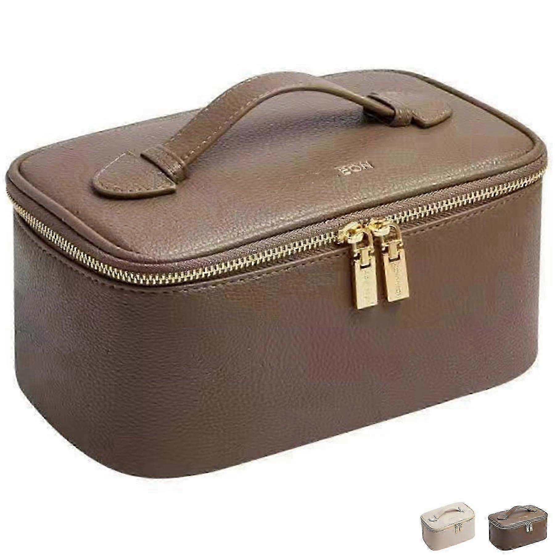 Makeup Bag Cosmetic Pouch Toiletry Bag Travel Cosmetic Organizer for Women Storage Cosmetics Case Bag (Brown Gray)