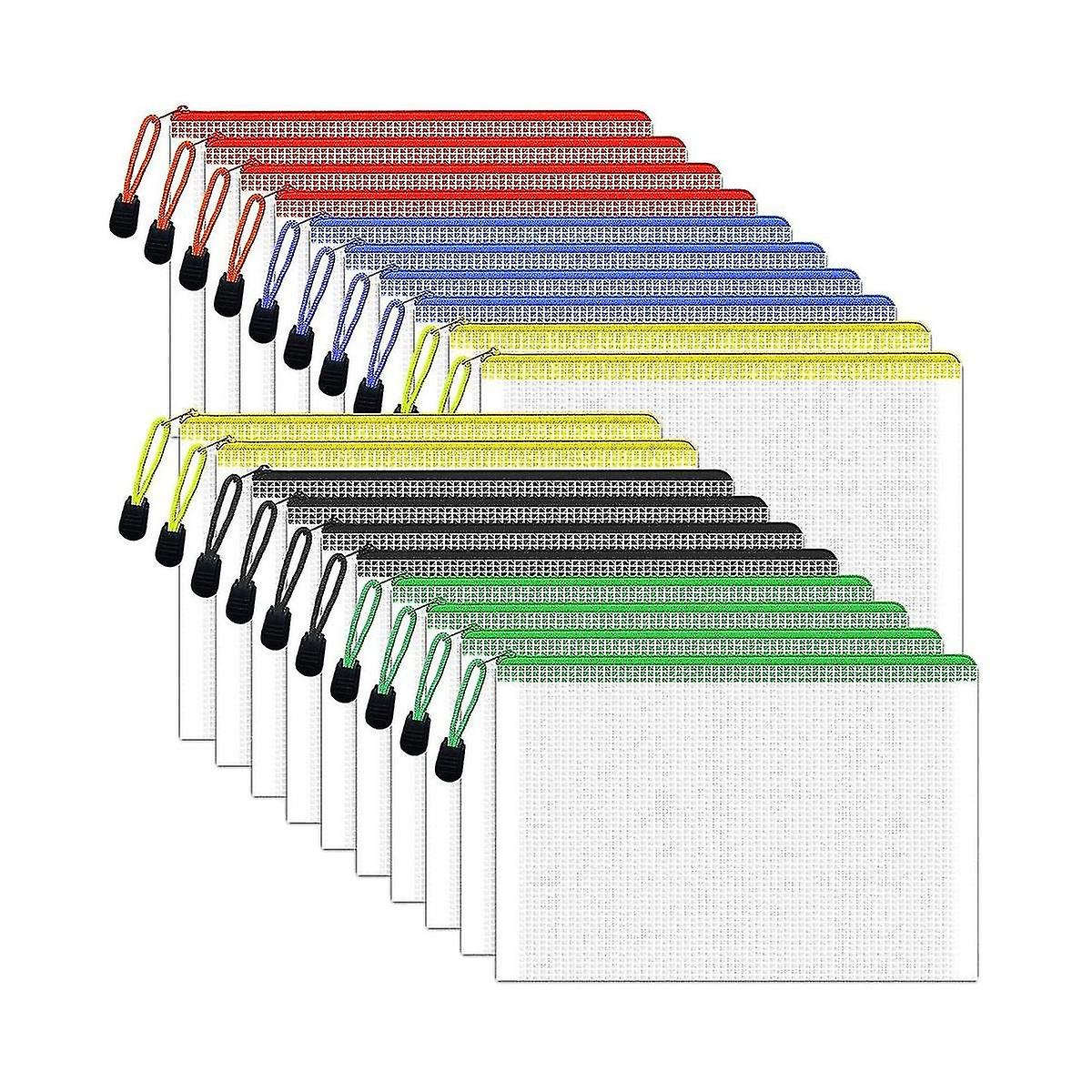20Pcs Mesh Zipper Pouch Waterproof Zipper File Bag A4 Suitable for Storage of Cosmetics Stationery