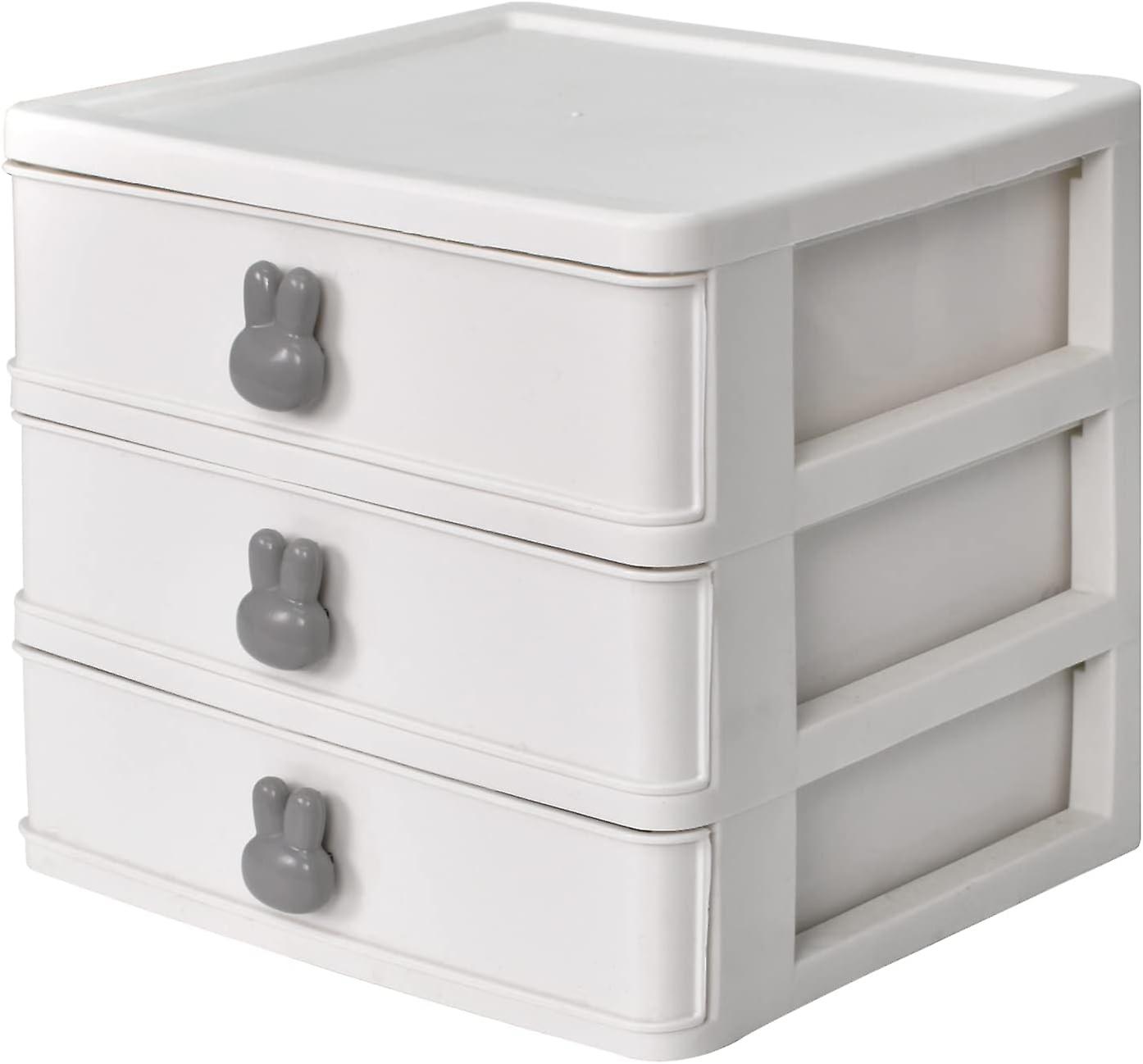 <p>【Cartoon Drawer Storage】The storage box is made of high-quality PP material, which is durable, waterproof and dirt-resistant, and easy to clean.</p> <p>【Vast space 【Storage】The three-drawer organizer has enough space to store cosmetics or office supplies, and the top shelf can also store items. Say goodbye to cluttered desks, classified storage.</p> <p>【Simple and stylish】The drawer table organizer has a fun rabbit handle for smooth pulling; transparent design allows you to find what you need instantly, easy to use.</p> <p>【Versatile】Ideal for office, bathroom or vanity storage to neatly organize makeup, jewelry, bathroom accessories, sewing supplies, crafts or office supplies.</p> <p>【Home Essentials】 Ideal for women to store your makeup and jewelry. Helps you keep all kinds of makeup items such as jewelry, eye shadow, powder, mascara, lipstick or mask safe and organized. A great gift for girls and women.</p> <p>Note: The data are all manually measured, please allow 1-3cm error Due to differences in light and display, there may be color differences, please refer to the actual item received. </p>