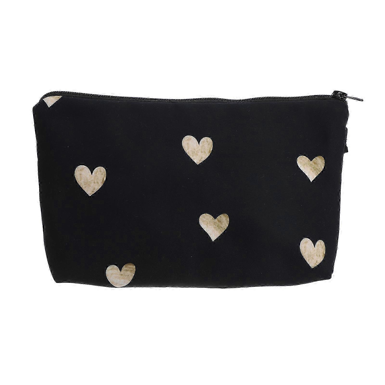 Women's Portable Printed Makeup Bag with Love Heart Pattern for Cosmetics & Toiletries Storage