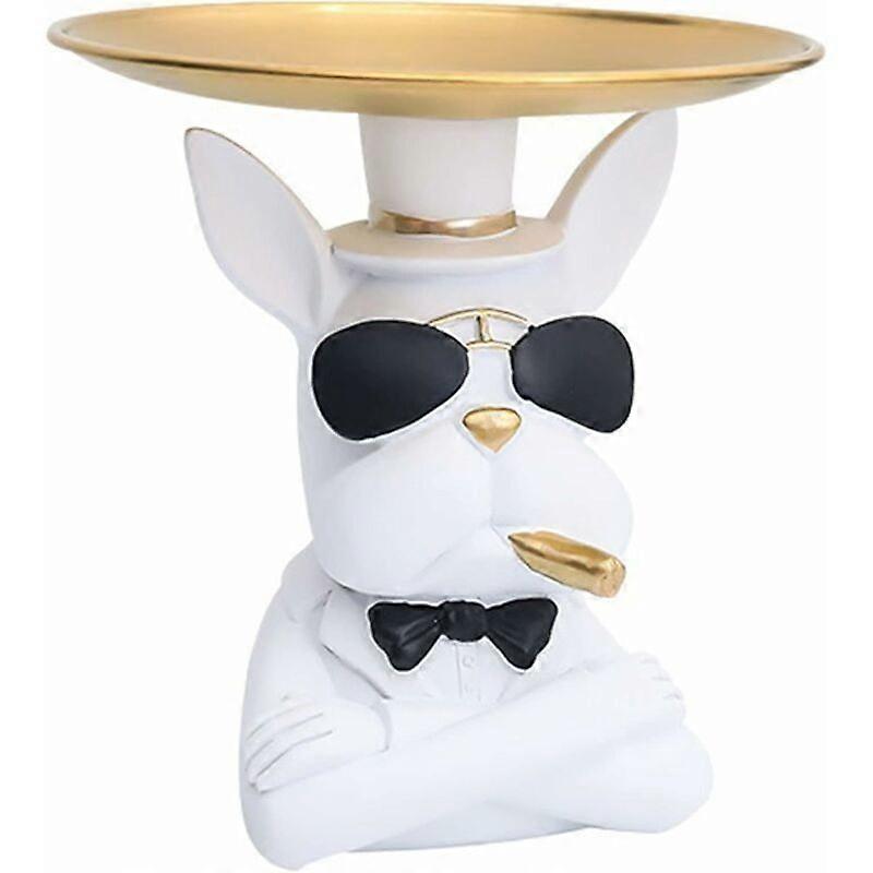 Nordic French Bulldog Sculpture Dog Statue Jewelry Storage Table Decoration Gift Plate Tray Home Art Statue White