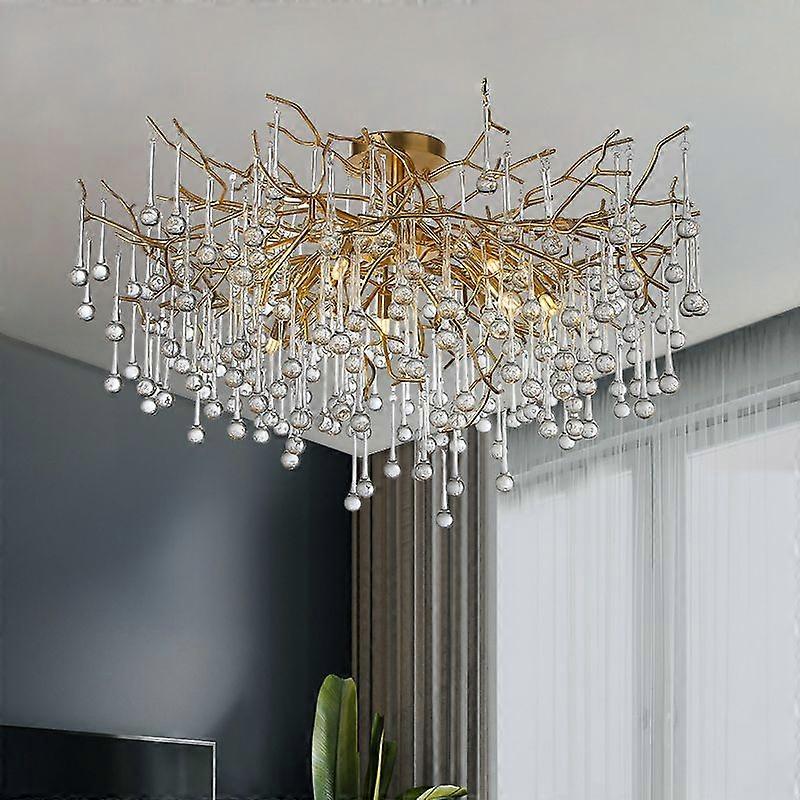 Nordic Gold Ceiling Chandelier Led Lighting For Room Large Ceiling Light Fixtures Living Room Hotel Hall Art Decor Crystal Lamp