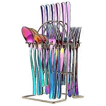 北欧カトラリー24pcsラックセットラックナイフフォークスプーンティースプーンカットル付きステンレススチールカトラリーセット