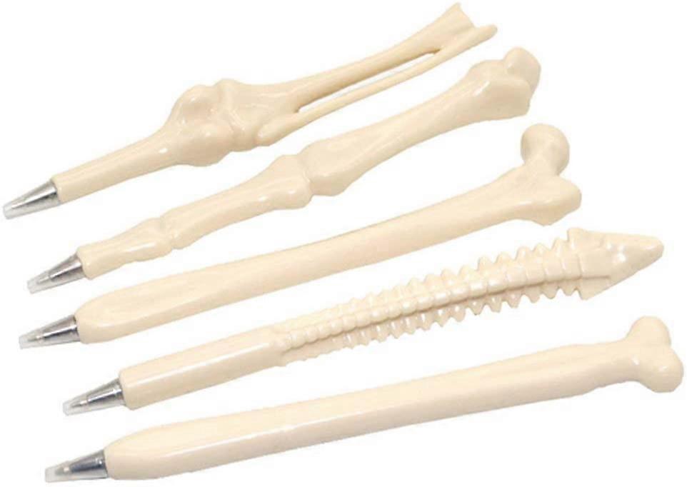 5 ballpoint pens shaped like bones. All writing implements write in blue ink. Main Material: Plastic Product consumption: birthday, award ceremony, giveaways, promotions, anniversary celebrations, trade shows, festivals. Ideal for orthopedists, nurses, midwives, doctors, radiologists, phlebotomists, veterinarians, surgeons, physiotherapists, etc.