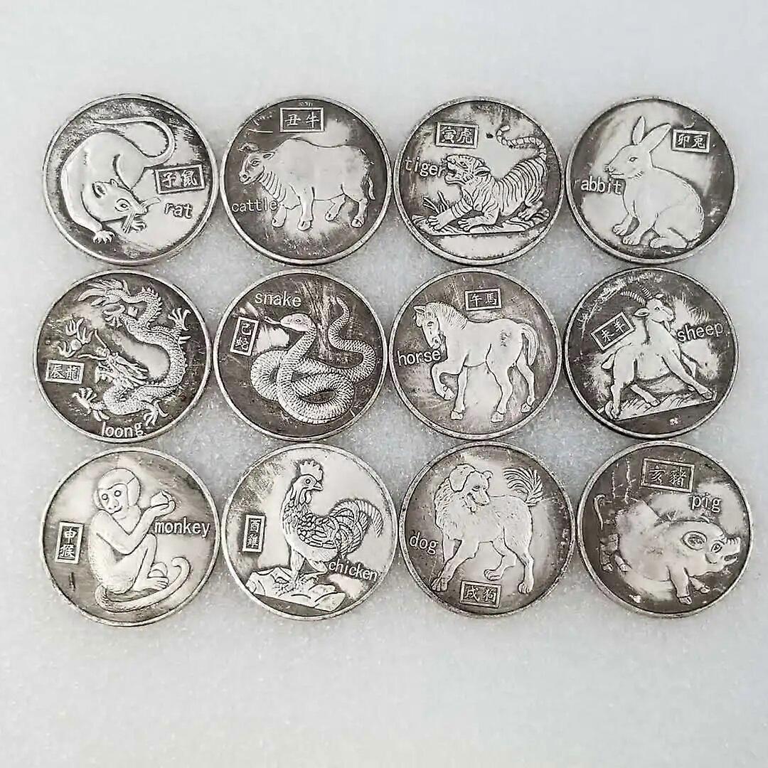 Regional Feature : Theme : MASCOT Technique : Plated Style : Antique Imitation Year : 2000-Present Material : Metal Feature A : Twelve Zodiac Antique Animals Collectible Coins Feature B : Year Of The Tiger 2022 Coins Feature C : Bagua Feng Shui Chinese Culture Coin Set Feature D : Home Decor Crafts Art Gifts