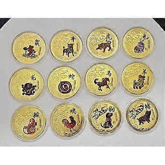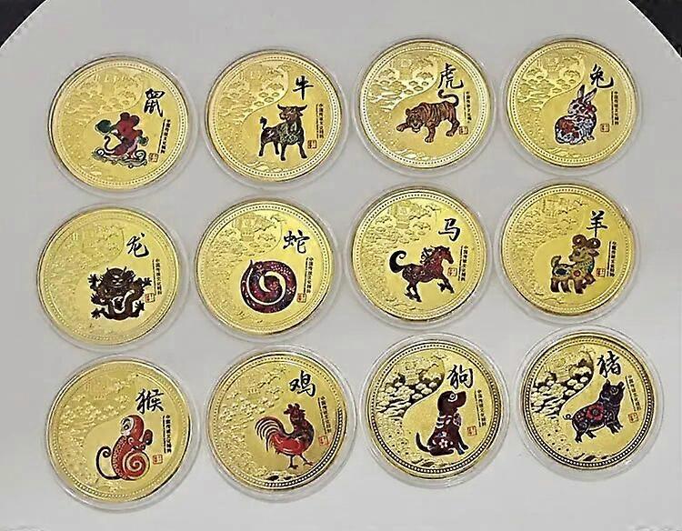 Twelve Zodiac Animals Collectible Coins Year Of The Tiger 2022 Gift Chinese Culture Coins Set Painted Commemorative Medal Craft