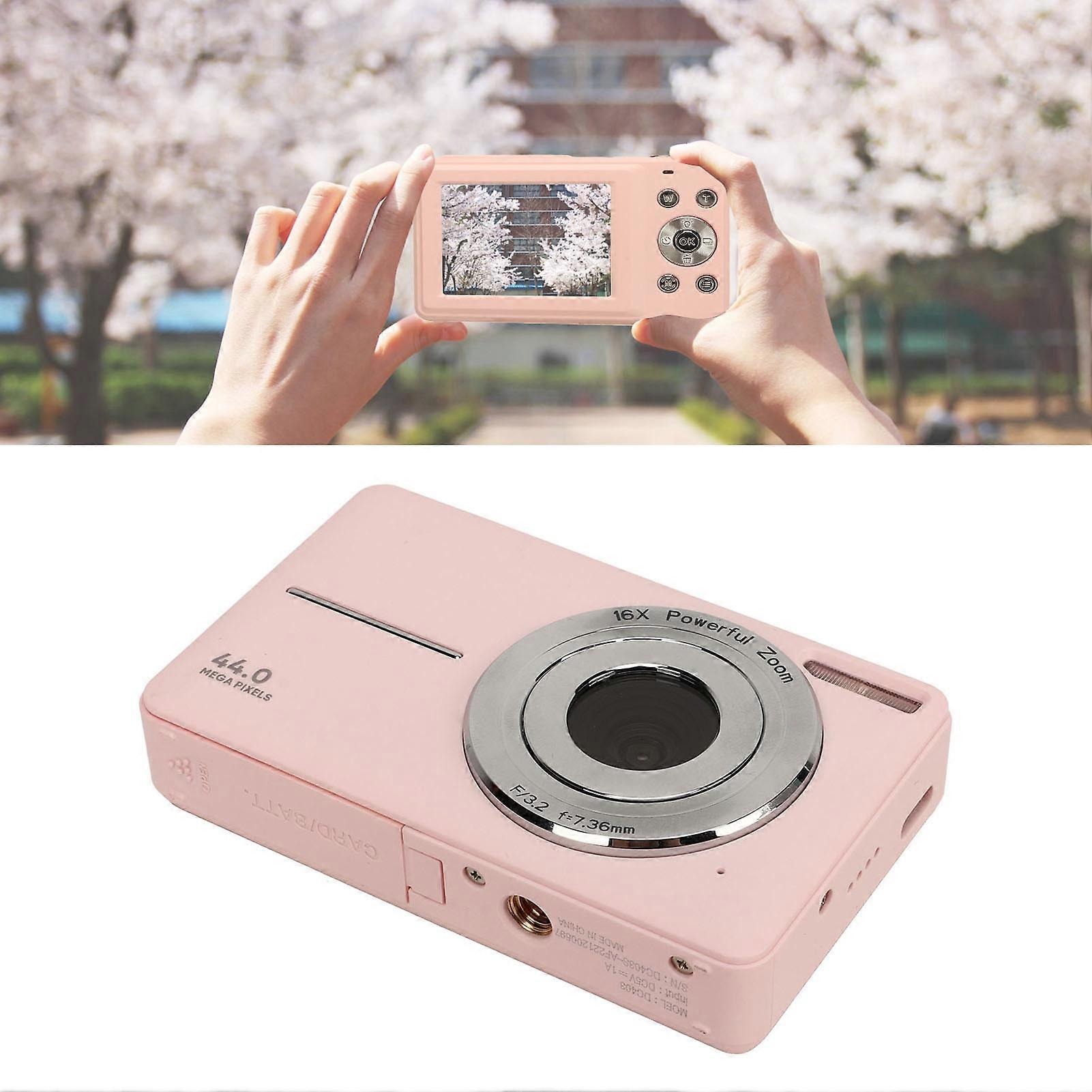 Digital Camera for Teens Kids 44MP 1080P HD 16X Digital Zoom Autofocus Pocket Compact Camera for Photography Travel Vlogging Pink EU Plug