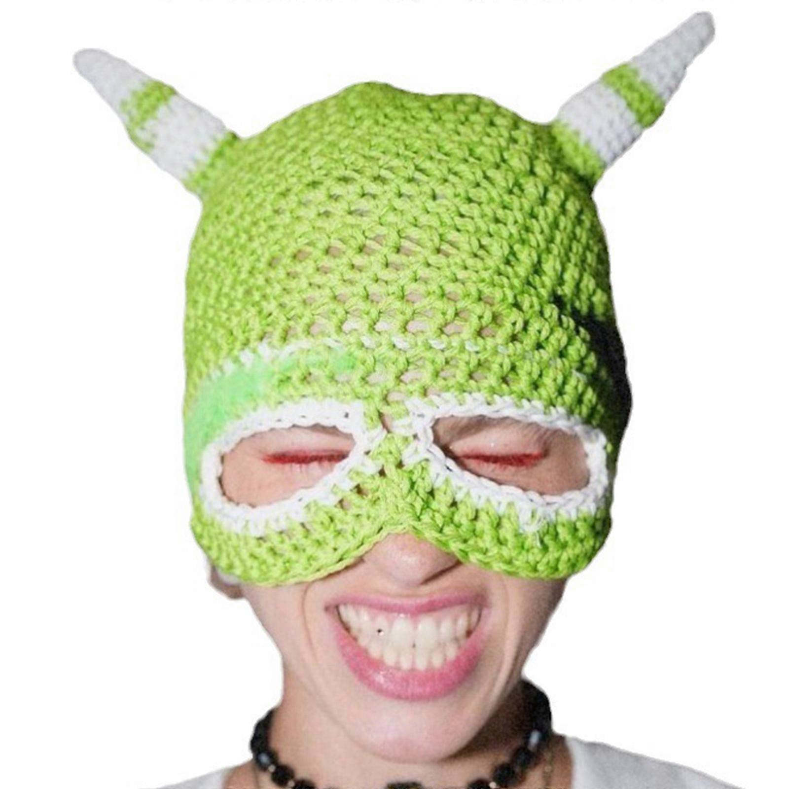 Teens Slouch Beanie Hat Elastic Cartoon Devil Horn Balaclava Hat Eye Exposed Hat Winter Adult Cycling Skiing Supplies Green