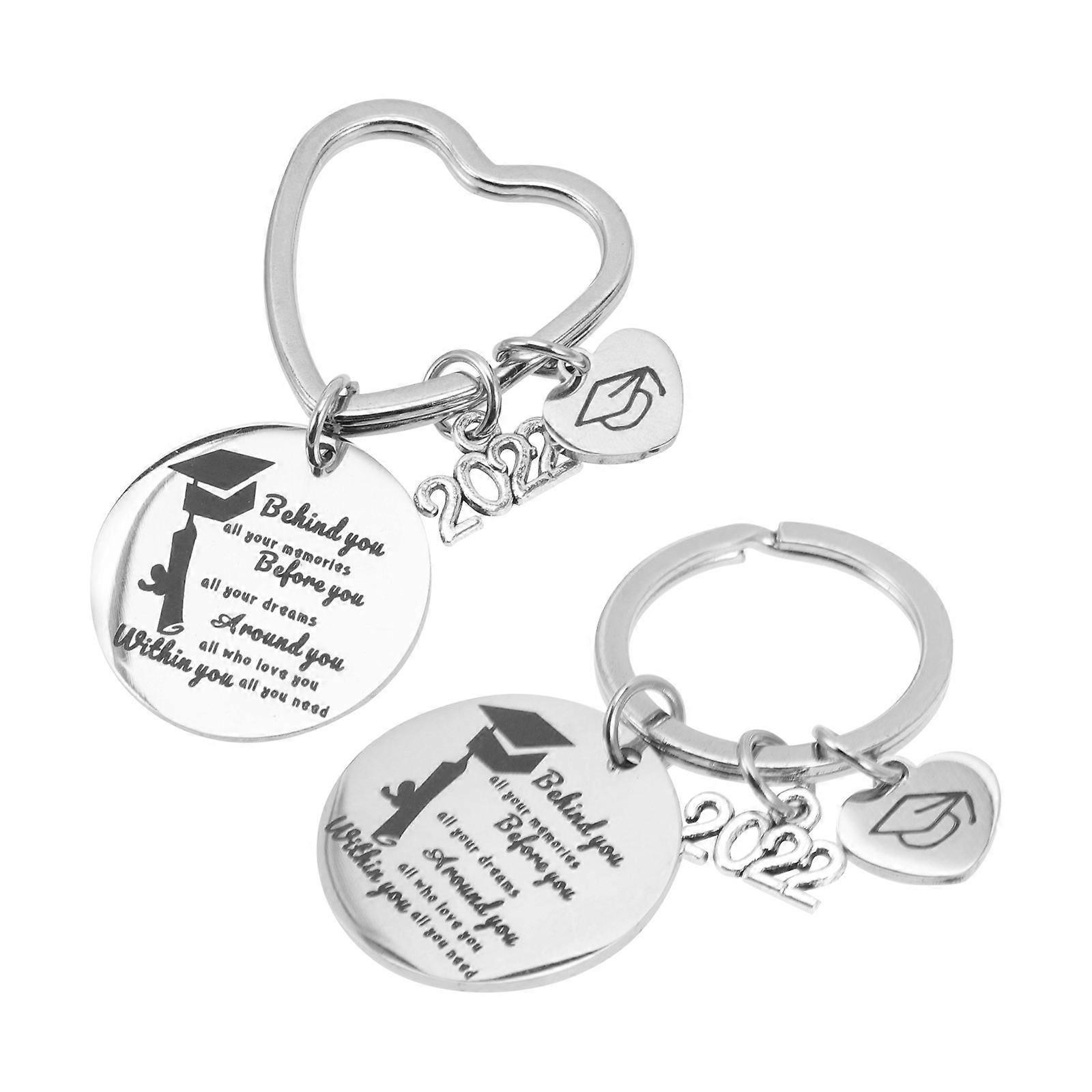 Graduation Key Ring Bag Hanging Pendant for Friends Graduation Ceremony Silver 2Pack