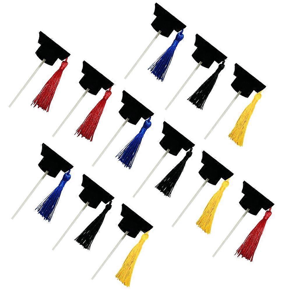 Graduation Cake Picks with Doctoral Hat Design for Decor Assorted Supplies 12pcs