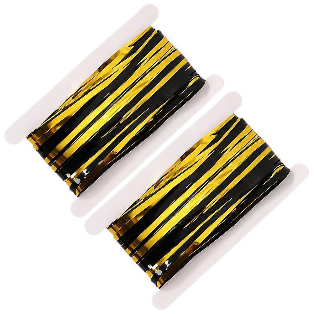 Graduation Foil Fringe Curtain Party Decoration for Graduation Party 250X100CM Black 2Pcs
