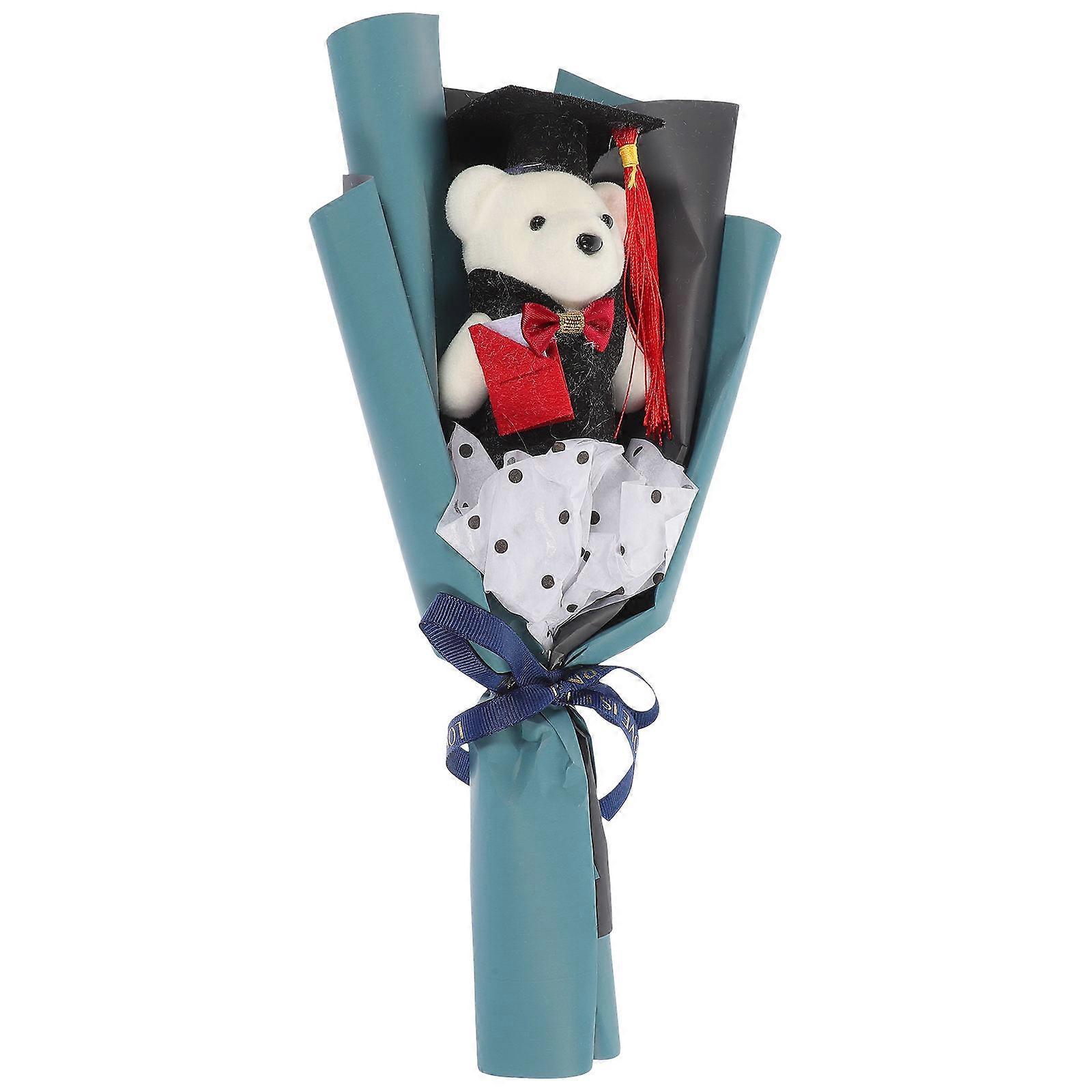 Graduation Bear Bouquet Plush Doll for Decoration 2Pcs Blue Gift