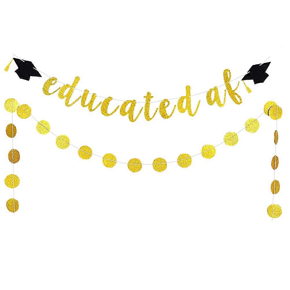 Graduation Wall Decorations Golden Sequin Hanging Banners Round Pieces Graduation Theme Party Scenes 1Set