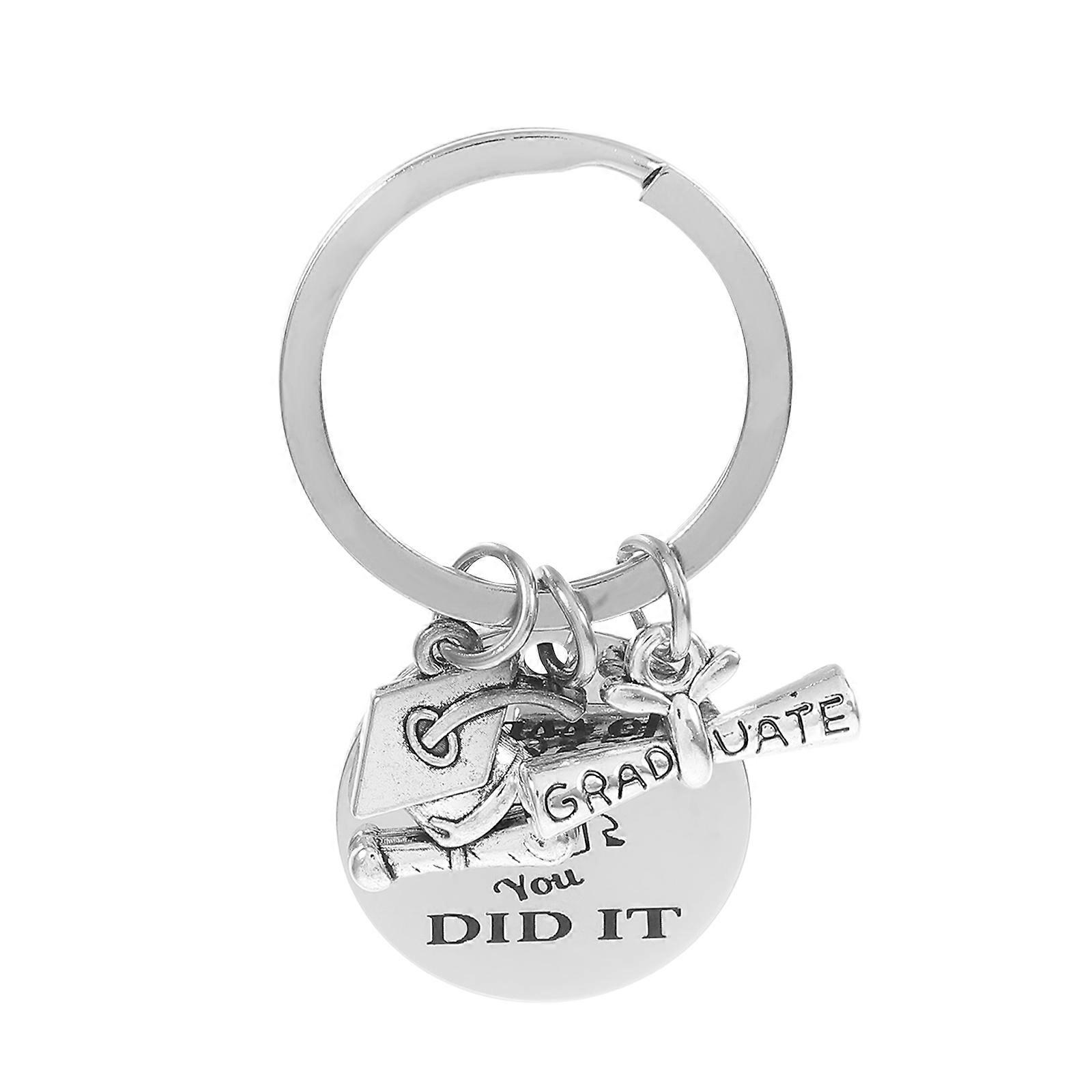 Graduate Stainless Steel Key Chain Bulk Graduation Keychain Class of 2025 High School and College Graduates Silver Rectangle Keepsake 1Set