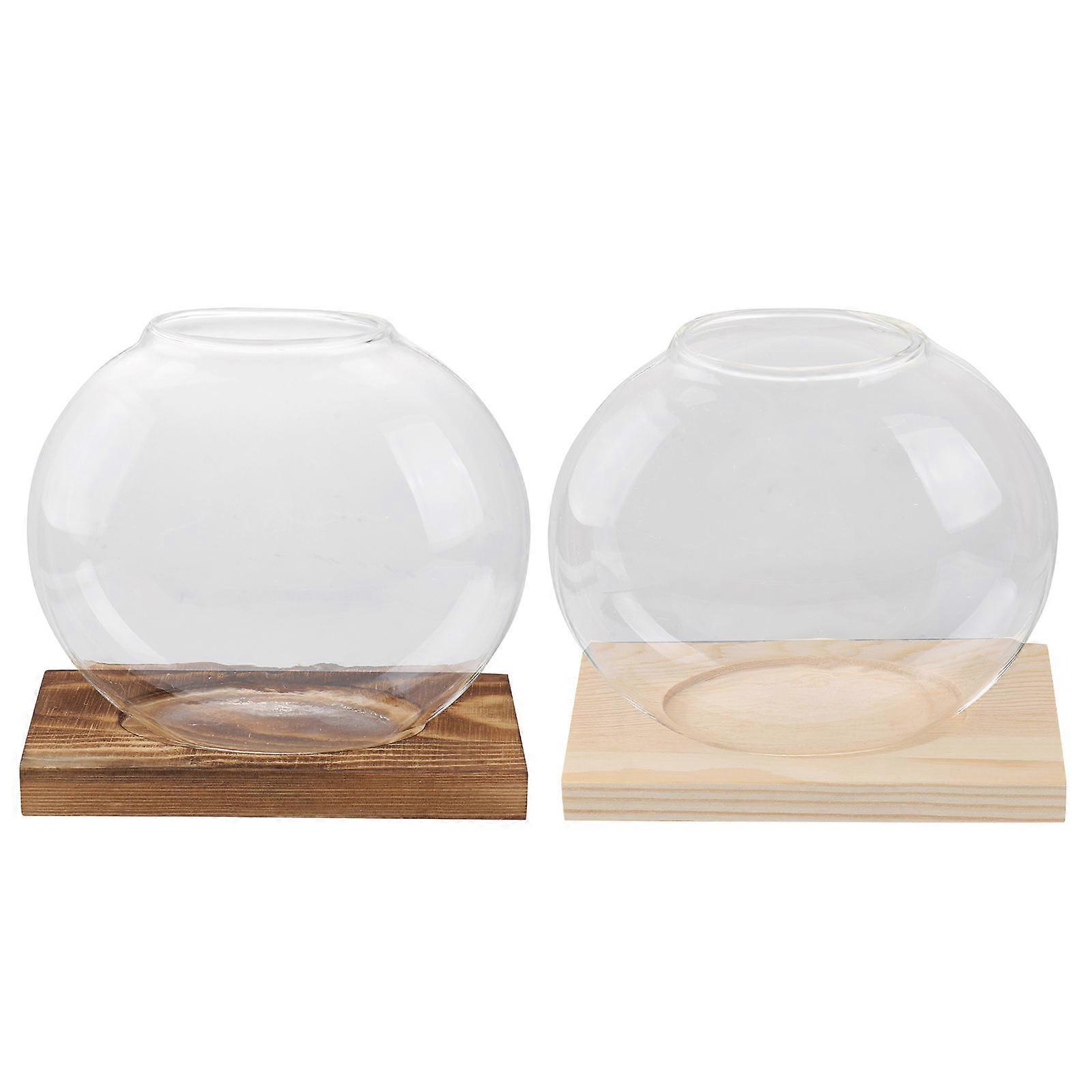 Tabletop Glass Vase Elegant Stand Shape Retro Wood Color Hydroponic Plant Holder Office Desk 13x12.5cm Simple Design 2 Sets
