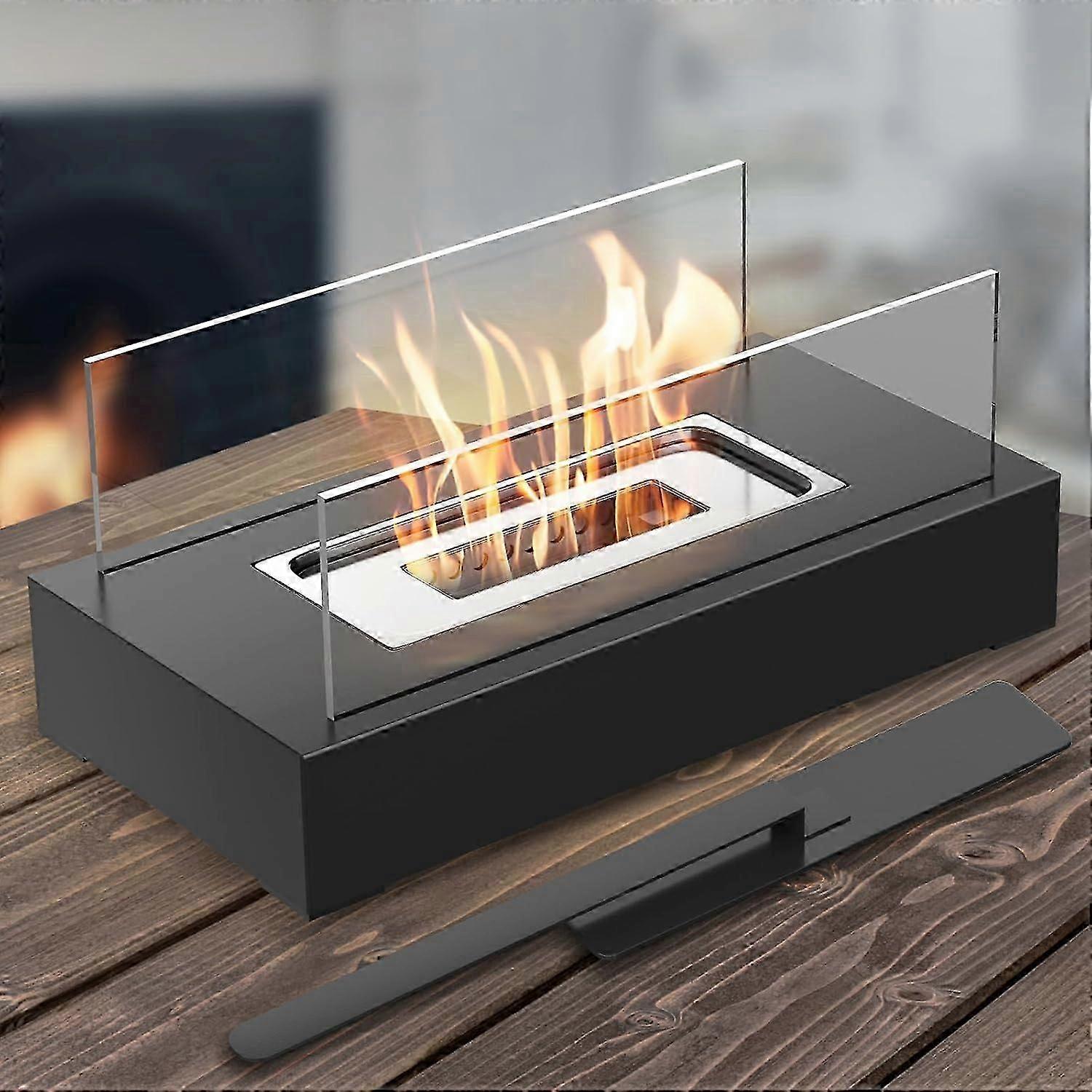 High Quality: Our tabletop fire pit is made of non toxic 304 stainless steel. Designed with a durable steel base and tempered glass panel, the unique modern shape is novel and beautiful. Bring you a more stable and durable fire pit experience. Smokeless Burning: This indoor fire pit tabletop is fueled by Bio Ethanol (70% 95%) or Isopropyl alcohol, which provides a clean, smokeless burning without foul odors! Dont worry, the stainless steel chamber case and tempered glass panels prevent overheating while offering optimal warmth!It is recommended to use professional Tabletop Fire Pit alcohol fuel, which have more beautiful flames than ethanol. Portable amp; Multi Use This portable fire pit with a windshield weighs about 4 pounds and you can take it anywhere to enjoy the flames whether it's indoors or outdoors. 250ml of fuel burns for almost 1 hour. Creating Coziness This table top fire pit can create a better vibe than candles, watching the flame flicker and dance is an instant mood booster, and soul soother. Helps create a more relaxed atmosphere in a variety of settings such as living rooms, bedrooms, date nights, family nights, and party talking.