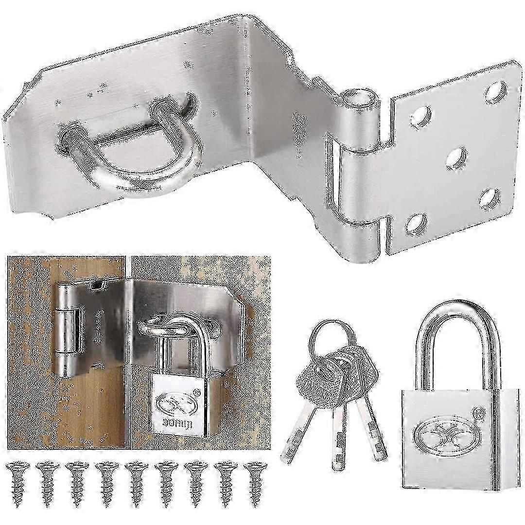 90 Degree Padlock Hasp With Padlock And Screws, Stainless Steel Door Latch Hasp, Undeformable Right Angle Padlock Hasp For Wooden Door, Garden, Window
