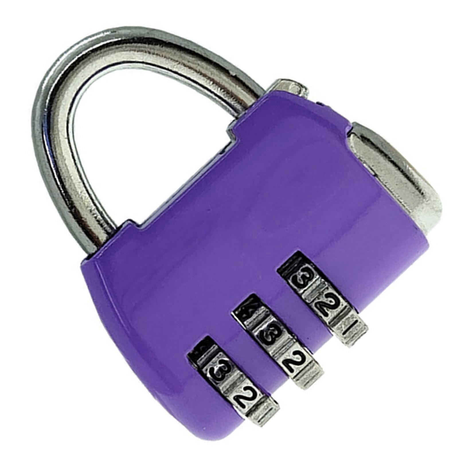 Padlock 3 Digit Combination Lock Safe and Durable Zinc Alloy Luggage Lock for Suitcase Purple
