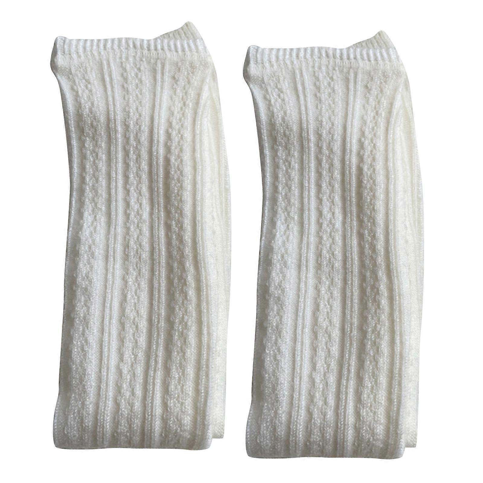 Thicken Warm Mohair Leg Warmers Women Japanese Harajuku Knitted Striped Stretch Warm Foot Cover Boot Cuff Long Socks White